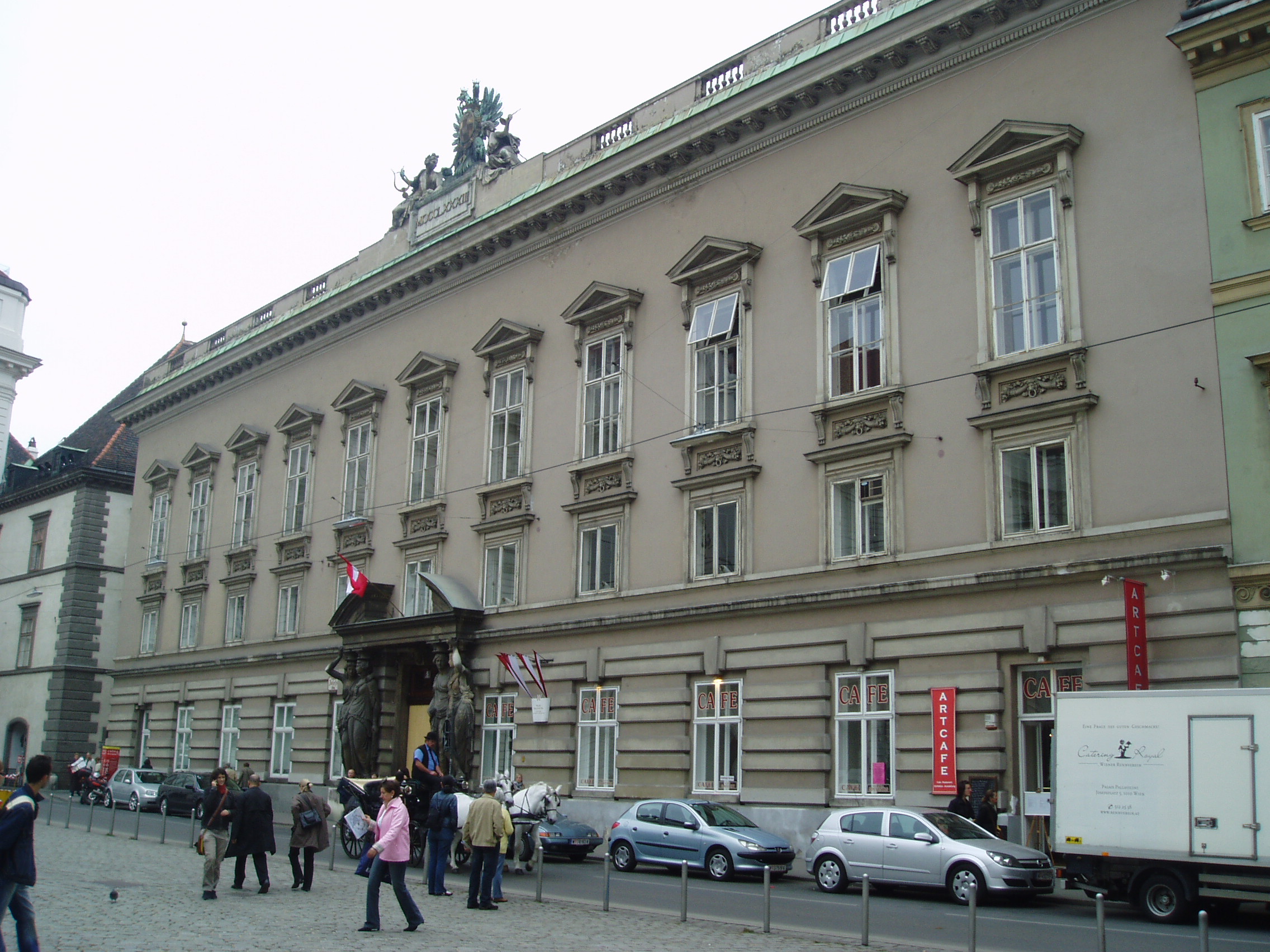 Nyilvános 998 | 1734 | Josefsplatz 5. Pallavicini-palota | Az olasz származású Pallavicini őrgrófi család palotája helyén a középkorban zárda állt. Az omladozó épületet egy kalandos életű kereskedő, Johann Fries szerezte meg, s ő építtette át 1783-84 között Ferdinand von Hohenberg udvari építésszel. Fries – Kaunitz kancellár bizalmából – diplomáciai küldetéseket is végzett, érdemei elismeréseképpen birodalmi grófi címet kapott. Fia, Moritz von Fries báró pedig már Mozart és Beethoven mecénásai közé tartozott; mindkét művész gyakran szerepelt estélyein, Beethoven pedig neki ajánlotta VII. szimfóniáját. |