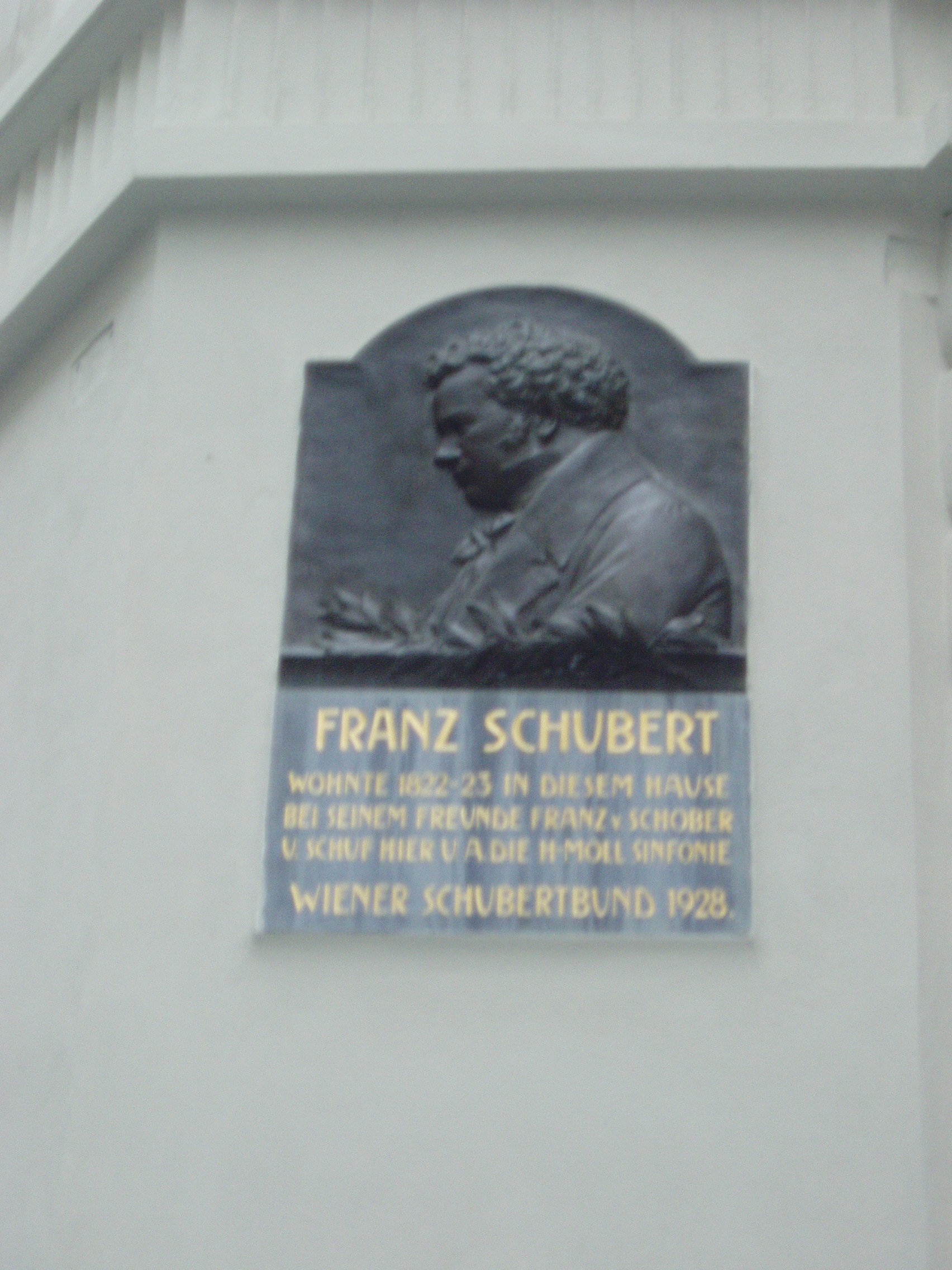 Nyilvános 1103 | 1986 | Spiegelgasse 9. | 1822/23-ban ebben a házban lakott Franz Schubert egyik barátjánál (neki magának sohasem volt lakása), s itt komponálta Befejezetlen szimfóniáját. A ház homlokzatán Schubert portrédomborművel díszített emléktáblája látható. |