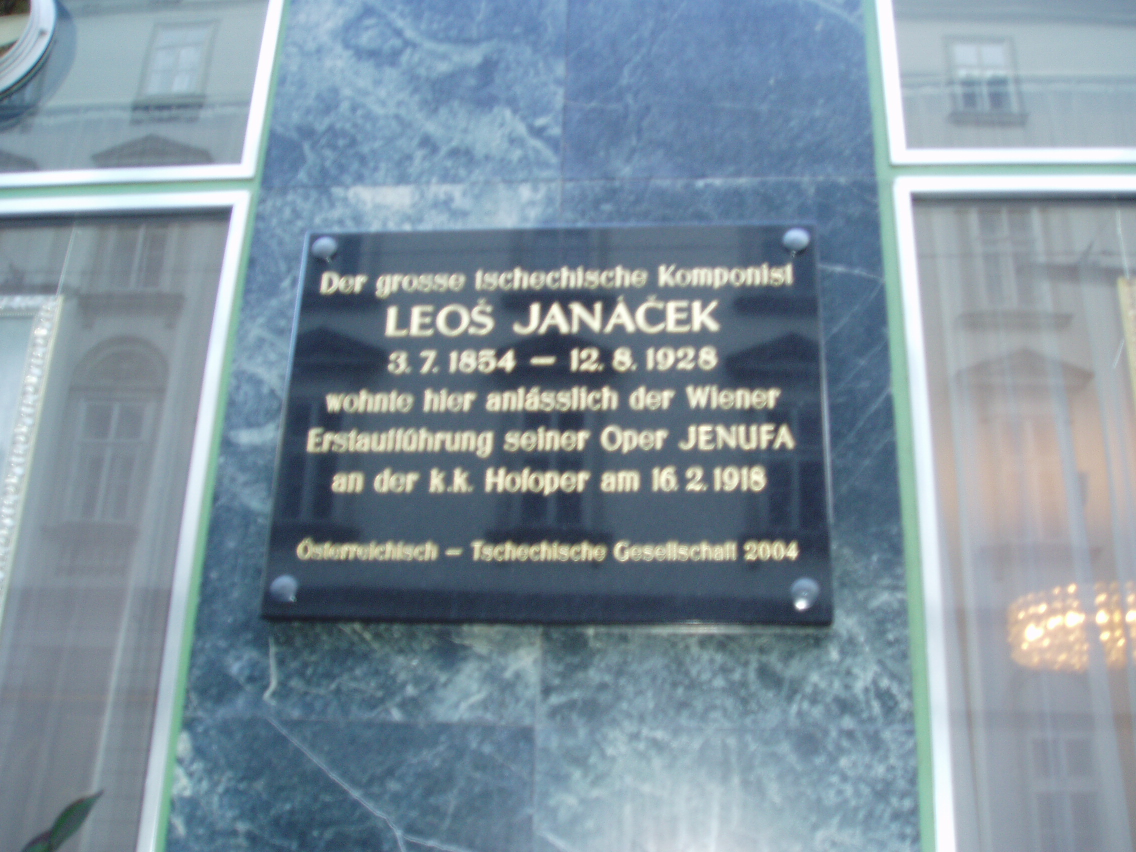 Nyilvános 1634 | 3562 | Rövid leírás | Teljes leírás (316 B) | Fleischmarkt 24. Hotel Sport A szálloda épületének homlokzatán Leos Janacek zeneszerző neve olvasható, aki 1918-ban itt szállt meg, amikor Jenufa című operáját bemutatták az operaházban. Ezen a helyen korábban is szálloda állt, megszálltak benne többek között Mozart, Liszt és Wagner is. |