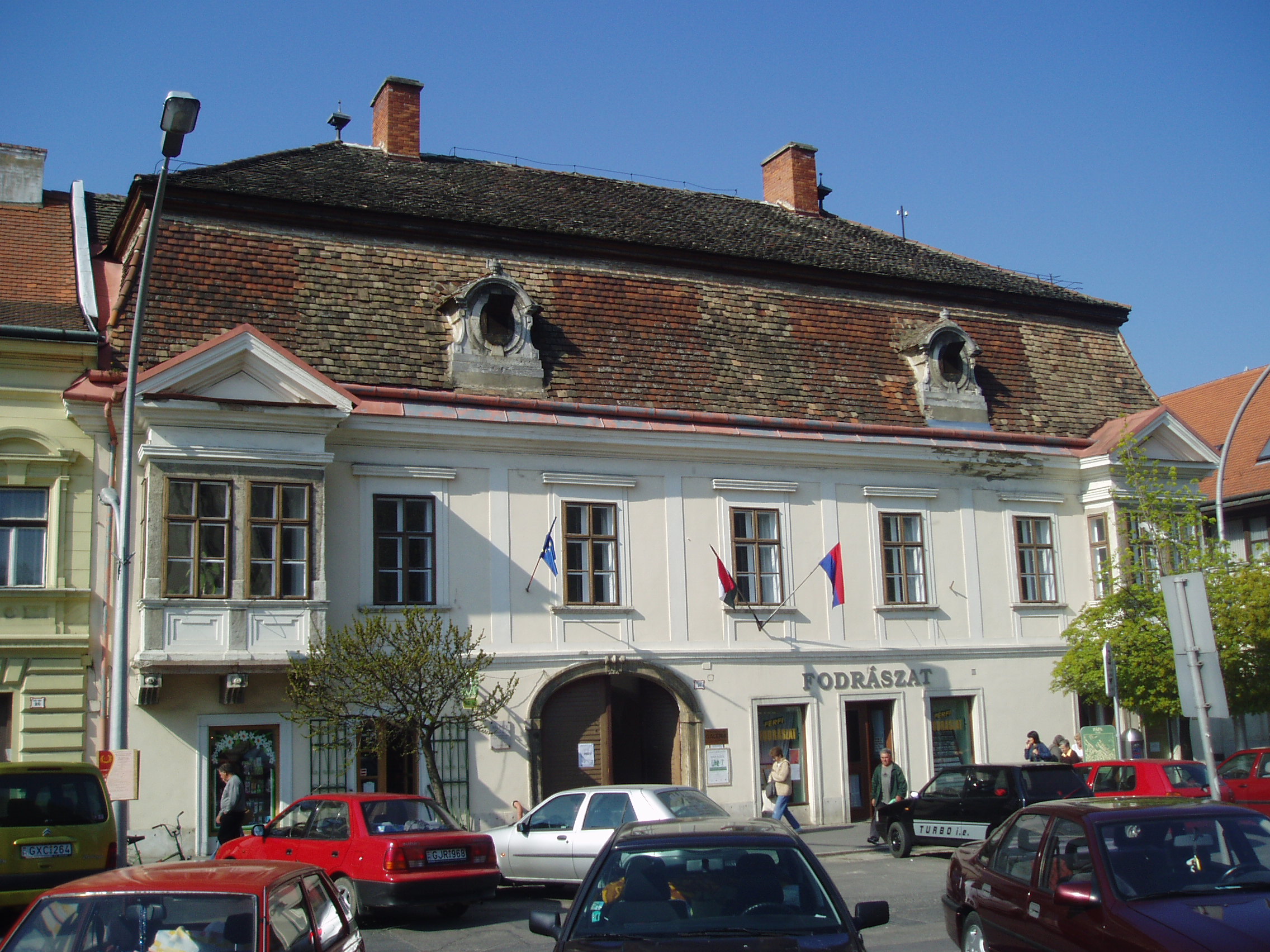 Nyilvános 942 | 2726 | Pápa, Fő tér 21. Zichy-ház | A Zichy-ház a Fő tér és a Korvin utca sarkán áll. Elnevezése máig nem tisztázott. 1760 körül épült, s a helyi késő barokk stílus egyik legértékesebb alkotása. Egy ideig a Pápai Kaszinó otthona volt, majd gróf Esterházy Tamás uradalmi háza lett. Előkelő tömegű, de egyszerű architektikájú épület, amelyet zárterkélyek élénkítenek. Hatalmas manzardteteje szinte "megüli" a házat. Kőkeretezésű, kosáríves, záróköves kapuja hangulatos, festői belső udvarba vezet. A több szakaszos kapualjat lapos boltozat fedi. A lépcsőházba kosáríves, kőkeretes ajtó nyílik, díszes, kovácsoltvas rácsa a kovácsművesség remeke. Az épület a legkorábbi, szakszerű műemléki helyreállítások közé tartozik a városban. A fénykép 2007 áprilisában készült. Felh. irod.: Németh Adél - Szabó Lajos: Pápa. Bp. Panoráma, 1989 |