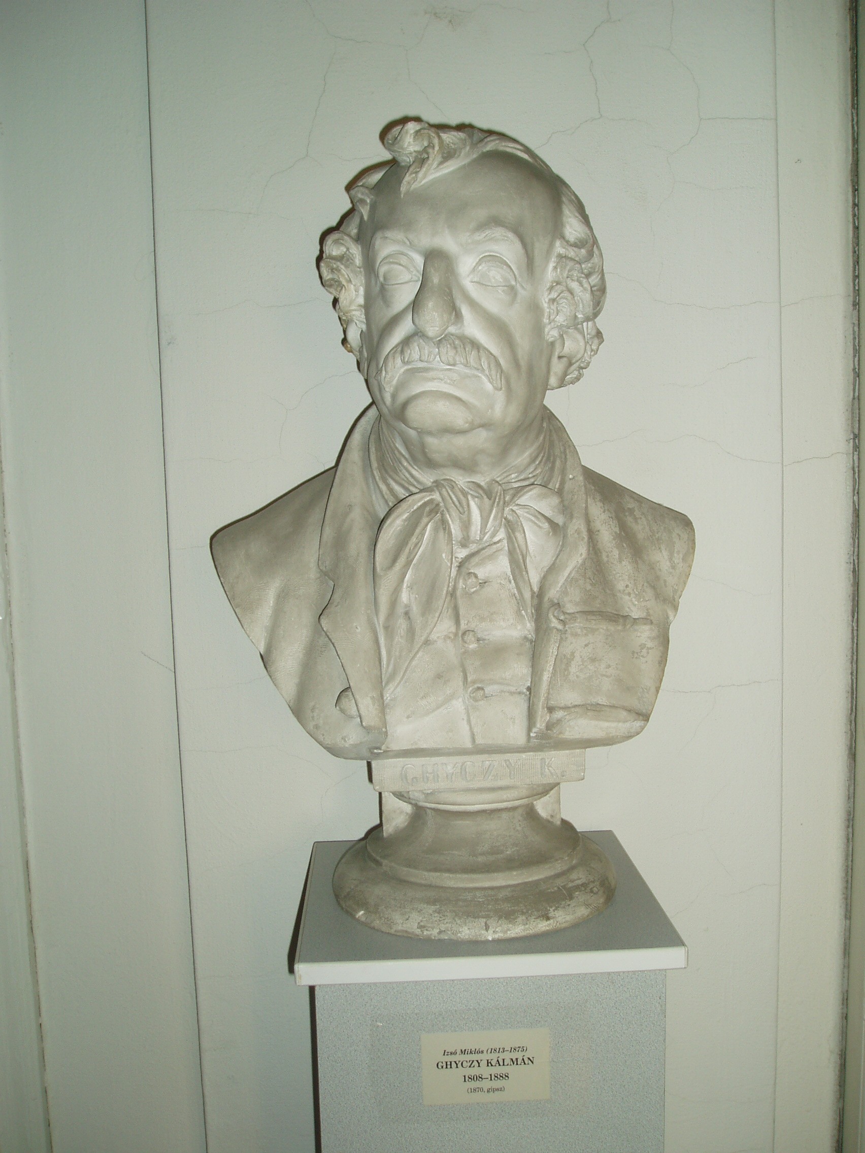 Nyilvános 884 | 1594 | Pápa, Március 15. tér 9. Pápai Református Kollégium Gimnáziuma | A híres pápai Református Kollégium első épülete 1531 és 1752 között a mai Ruszek közben, a Lábasház épületének helyén állott. 1752-ben - Mária Terézia rendeletének következtében, amely megszüntette a szabad vallásgyakorlást - harminckét évig csak a közeli Adásztevelen működhetett. 1784-ben, II. József türelmi rendeletének köszönhetően térhetett vissza az iskola Pápára, s hamarosan felépült a ma Ókollégiumként ismert épület (lásd: Pápa, Petőfi u. 13.), amelyben 1794-ben indulhatott meg az oktatás. Az intézmény 1857-ig működött ott, ekkor átköltözött a Március 15. tér 13-15. számú házba, az ún. Nátus-ba, majd 1895-ben utolsó végleles helyére, ide, a Március 15. tér 9. számú monumentális új épületbe. A képen - a könyvtár előterében - Ghyczy Kálmán (1808-1888) jogtudós, pénzügyminiszter fehér márvány mellszobra látható, Izsó Miklós 1870-ben készült alkotása. A fénykép 2007 áprilisában készült. Felh. irod.: Németh Adél - Szabó Lajos: Pápa. Bp. Panoráma, 1989 http://refi-papa.hu |