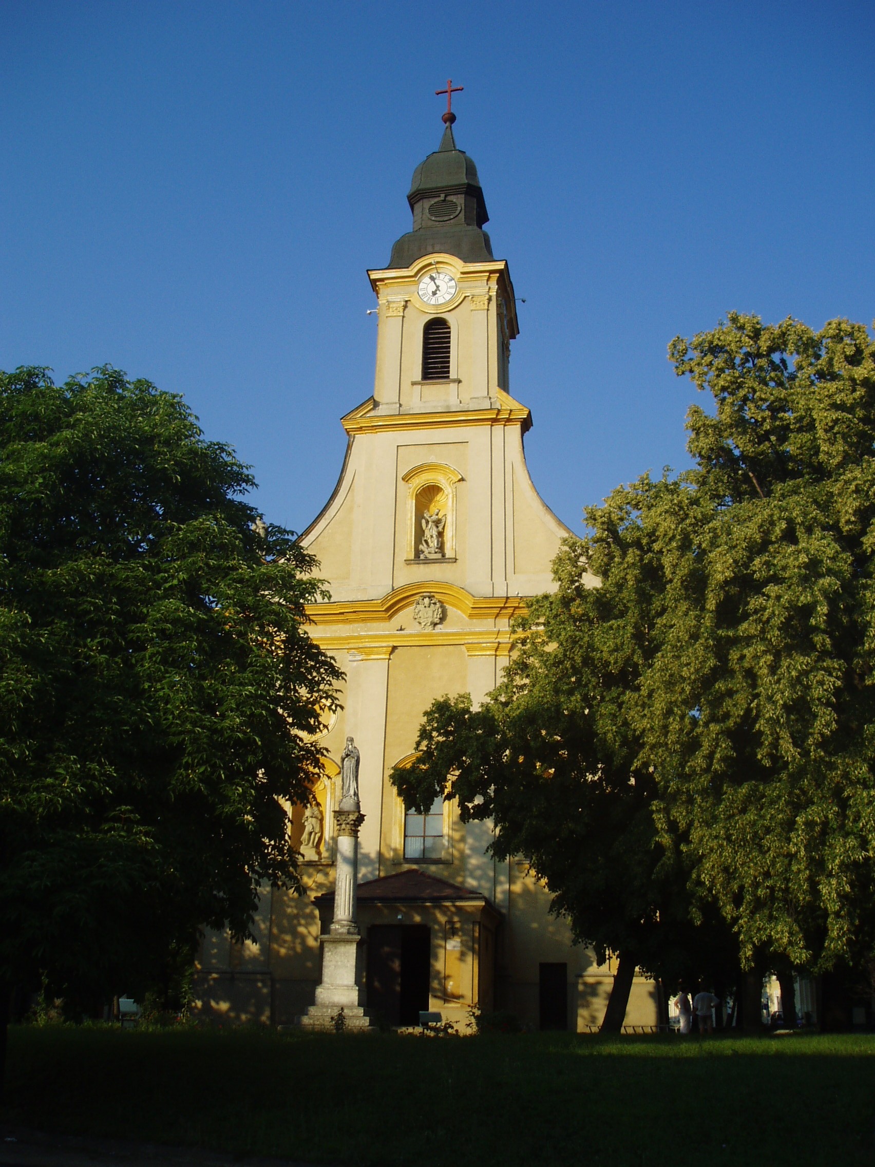 Nyilvános 913 | 1506 | Sümeg, Bíró Márton utca 1. Plébániatemplom | Sümeg egyik legszebb épülete az Urunk mennybemenetele tiszteletére emelt római katolikus templom. Ezen a helyen már a XIV. században templom állott, melyet Padányi Bíró Márton lebontatott, és 1756-1759 között építtette fel a mai barokk plébániatemplomot. Építészetileg a barokk stílus általános, megszokott mintáit mutatja: nyugati főhomlokzatát hatalmas falpillérek díszítik, fölötte háromrészes főpárkány húzódik, a középrészben az építtető püspök címerével. Az épület igazi értékét Franz Anton Maulbertsch falfestményei jelentik, amelyek az egész templombelsőt beborítják. Nem véletlenül nevezik a templomot a rokokó Sixtus-kápolnájának. A fénykép 2007 júniusában készült. Felh. irod.: Koppány Tibor - Kozák Károly: Sümeg útikalauz. Veszprém, Idegenforgalmi Hivatal, 1965 Látnivalók Veszprém megyében. Miskolc, Well-PRess, 2004 Sümegi kalauz. Sümeg, Sümegi Fórum alapítvány, 1993 |
