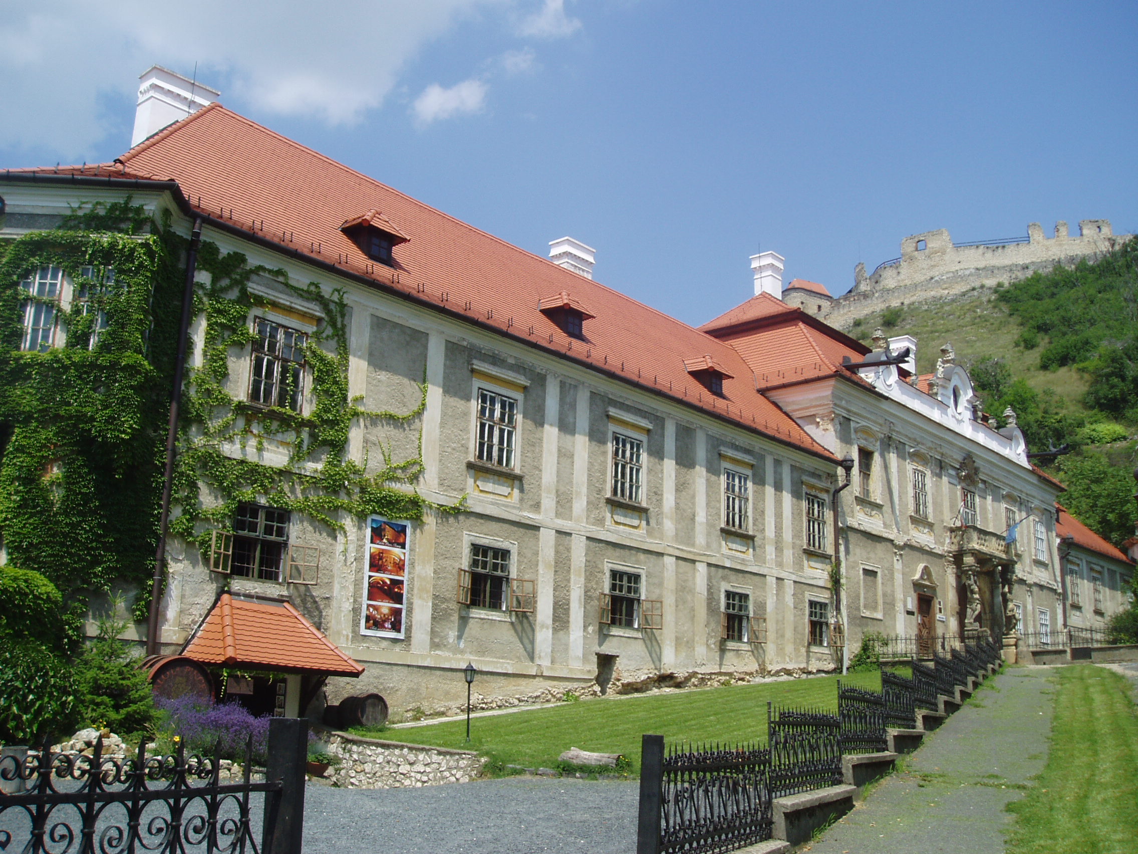 Nyilvános 826 | 1402 | Sümeg, Szent István tér 10. Püspöki palota | A város egyik legszebb épülete az 1748 és 1755 között emelt püspöki palota. Építtetője Padányi Bíró Márton, aki 1745-ben lett veszprémi püspök, aki élete végéig nagyrészt Sümegről irányította az egyházmgye életét. Sümegen is hunyt el 1762. augusztus 16-án, 67 éves korában. Az épület a domborzati viszonyokat követve egy részében földszintes, nagyobb részében viszont emeletes. Középen a barokk építészet szabályai szerint kiemelt, díszesebb, az íves főkaput tartalmazó épületrész látható. A főkapu felett lévő faragott kőmellvéd erkélyt Atlasz-figurák tartják. A főpárkány alatt helyezték el az építtető püspök gazdagon díszített címerét. Az épület ebédlőjében és kápolnájában a falképek Vogl György, a stukkók Antonio Orsatti 1750-ben készült barokk stílusú alkotásai; a szobák stukkódíszítése és falburkolata szintén barokk stílusú. A palotát 1830 körül klasszicista stílusban átalakították. A fénykép 2007 júniusában készült. Felh. irod.: Koppány Tibor - Kozák Károly: Sümeg útikalauz. Veszprém, Idegenforgalmi Hivatal, 1965 Látnivalók Veszprém megyében. Miskolc, Well-PRess, 2004 Sümegi kalauz. Sümeg, Sümegi Fórum alapítvány, 1993 Hőgyész László: Sümeg évszázadai. Veszprém, 1989 |
