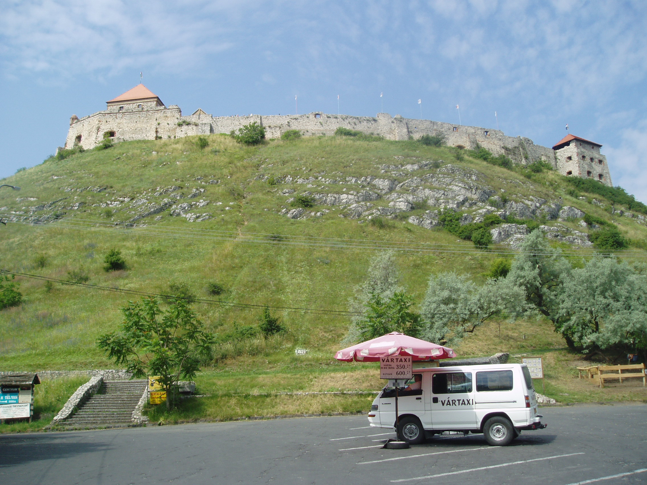Nyilvános 1037 | 1579 | Sümeg, Vár | A Dunántúl egyik legnagyobb méretű vára a helység fölötti, szabályos kúp alakú mészkősziklán magasodik. Az utas bármerre is jár a városban, szinte mindenhonnan látható, s minden oldalról más-más látványt nyújt. Magja, az ún. öregtorony a XIII. században épült. Egyes források szerint a tatárjárás idején IV. Béla is tartózkodott itt. Az erődítményt a XV. században megnagyobbították. A XVI. század közepén olaszbástyákkal erősítették meg; a törökök nem is tudták bevenni, noha az alatta lévő települést elpusztították. 1713-ban a császári csapatok felgyújtották. Romos állapotából 1959 és 1964 között állították részben helyre. Ma a legjobb állapotban lévő magyarországi vár, s rendkívüli módon őrzi középkori hangulatát. A várban múzeumot is berendeztek, melyben megismerhetjük történetét, a régi büntetések különböző módjait és eszközeit, valamint szablya- és kocsigyűjteményt láthatunk. A vár látványos rendezvények, várjátékok színhelye. 1994 óta évenként az idegenforgalmi idényben a veszprémi Petőfi Színház művészei tartanak előadásokat a Sümegi Várszínház rendezvénysorozatának keretében. A fénykép 2007 júniusában készült. Felh. irod.: Koppány Tibor - Kozák Károly: Sümeg útikalauz. Veszprém, Idegenforgalmi Hivatal, 1965 Látnivalók Veszprém megyében. Miskolc, Well-PRess, 2004 Sümegi kalauz. Sümeg, Sümegi Fórum alapítvány, 1993 Hőgyész László: Sümeg évszázadai. Veszprém, 1989 |
