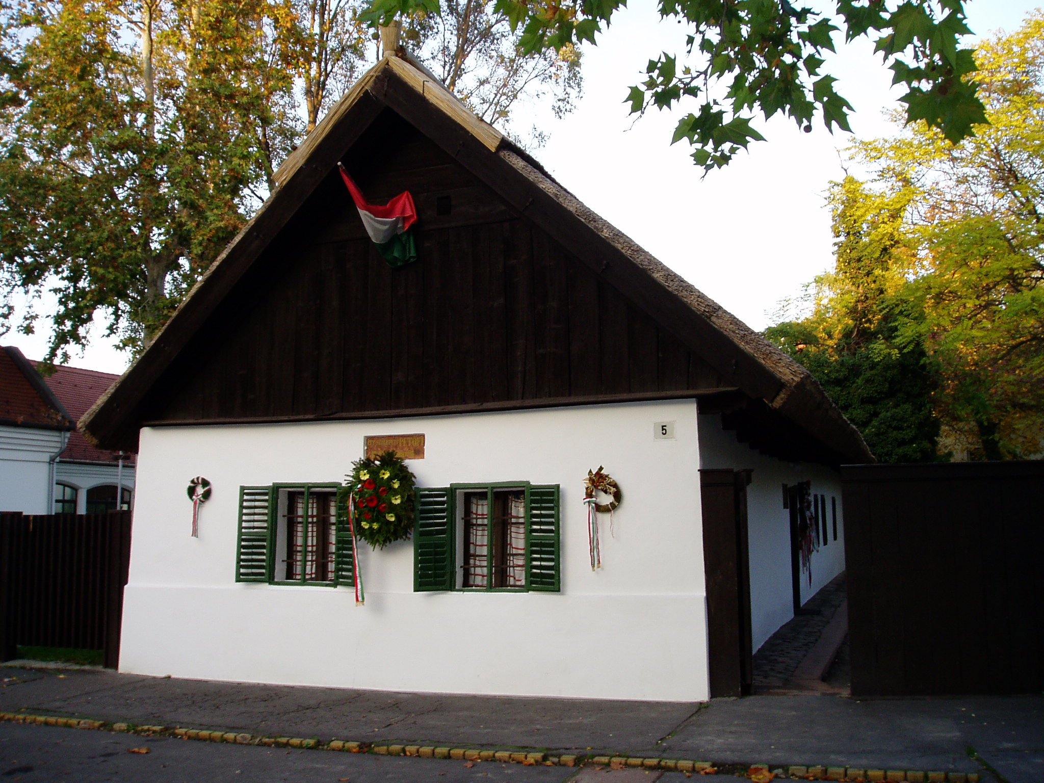 Nyilvános 981 | 1703 | Kiskőrös, Petőfi tér 5. Petőfi Sándor szülőháza | A népi stílusú lakóház 1790 körül épült. A nádfedeles, deszkaoromzatú, már nem új házat Petrovics István hentes és mészáros 1821-ben vette bérbe, s felesége, Hrúz Mária itt szülte első gyermeküket, Sándort. Az 1790 körül épült zsellérházban kapott helyet a Petőfi Emlékmúzeum. A ház homlokzati márványtábláján ez olvasható: "Itt született Petőfi 1822. december 31-én". A bejárati ajtó szemöldökfája felett a költő sorait olvashatjuk: "Szent a küszöb, melyen beléptem én, / Oh szent a szalma kunyhók küszöbe. / Mert itt születnek a nagyok, az ég / A megváltókat ide küldi be." A ház konyhájában korabeli használati tárgyak láthatók. Az utcai szoba a Petrovics család bútoraival és egykori használati tárgyaival emlékeztet arra, hogy ott született a nemzet nagy költője. A képen látható ágyat az elszegényedett Petrovics család annakidején Dömösön eladta más bútorokkal együtt, s 1890-ben a Magyar Írók és Művészek Társasága kutatta fel és vásárolta meg. A fénykép 2004 októberében készült. Felh. irod.: Látnivalók Bács-Kiskun megyében. /Vendégváró/. Well-Press Kiadó, 2002. Petőfi emlékhelyek a Kárpát-medencében. Kiskőrös, Petőfi Sándor Társaság, 1996 |