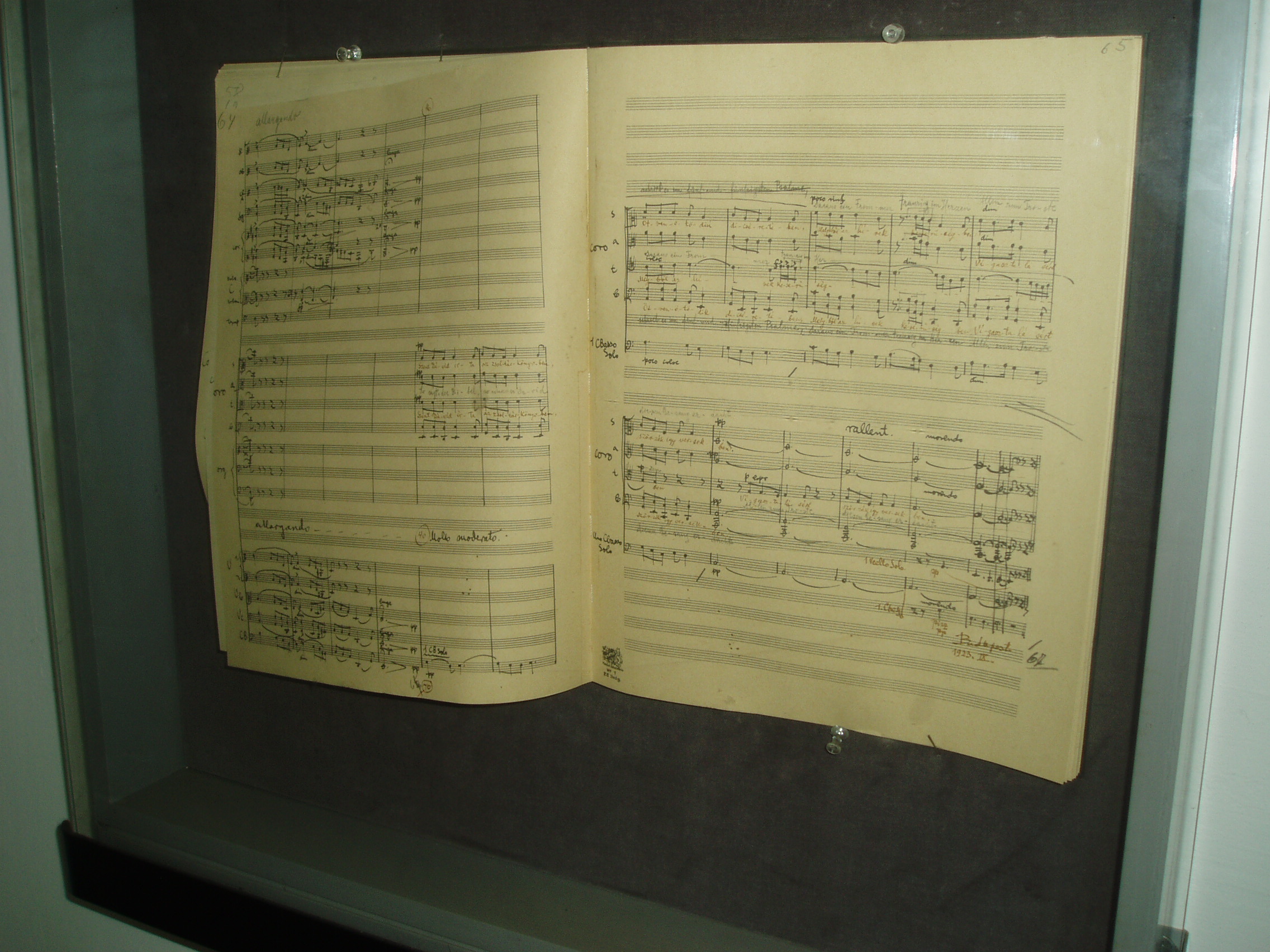Nyilvános 1471 | 1959 | Kecskemét, Kéttemplomköz 1. Kodály Intézet | A kecskeméti születésű Kodály Zoltán zenepedagógiai törekvéseit és nevelési rendszerét az egész világra kisugárzó Kodály Zoltán Zenepdagógiai Intézet otthona középkori épületrészek és alapfalak felhasználásával ferences kolostornak épült 1702–1736 között. Az épületet Kerényi József tervei szerint 1975-ben alakították át az újonnan alapított Kodály Intézet céljaira. A ragyogó átalakítás az új intézmény igényeit és a műemléki környezet minél teljesebb megóvását egyaránt figyelembe vette. Az 1980-as évek elején — ugyancsak Kerényi József tervei alapján — új szárnnyal bővítették, amely irodáknak, tantermeknek, a zenei szakkönyvtárnak és az audiovizuális stúdiónak ad helyet. Mint az intézmény honlapján is olvasható, a Kodály Intézet a magyar zenepedagógia világszerte ismert és elismert műhelye. Kodály zenei nevelési koncepciójának elméleti és gyakorlati oktatására továbbképzéseket szervez magyar zenetanárok, valamint éves tanfolyamokat külföldi szakemberek számára. A földszinti folyosókon a nagyközönség számára is látogatható állandó Kodály–kiállítást rendeztek, amelyet alkalmankét időszaki tárlatok egészítenek ki. A képen a kiállítás egyik kincse, a Psalmus Hungaricus kéziratos partitúrája látható. A kolostor egykori refektóriuma ma kiváló akusztikájú hangversenyterem. A kerengő által közrefogott belső udvaron is gyakran rendeznek nyári koncerteket. A fénykép 2006 augusztusában készült. Felh. irod.: Heltai Nándor: Kecskemét. Kecskeméti Lapok, 1998 www.kodály-inst.hu |