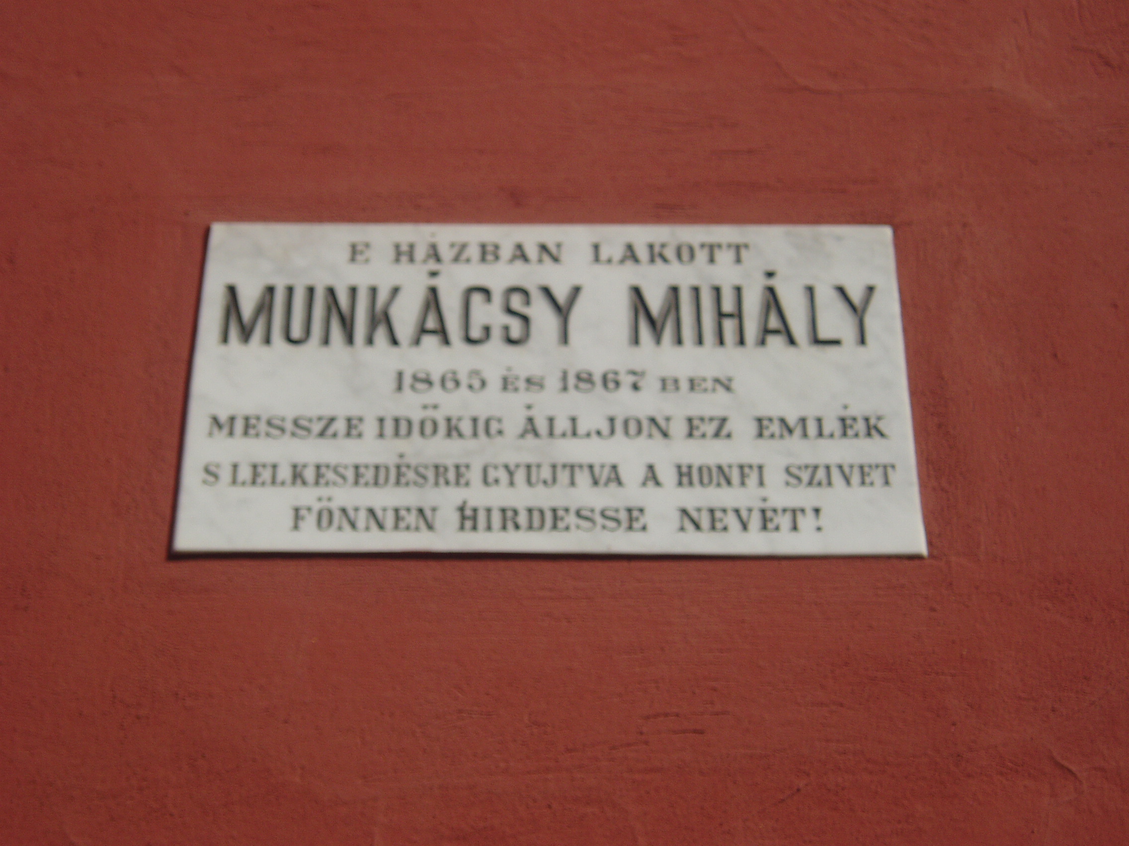 Nyilvános 925 | 1448 | Pécs, Munkácsy utca 31. | A romantikus stílusú, földszintes lakóházon Munkácsy Mihály emléktáblája olvasható. 1865-ben és 1867-ben itt szállt meg rokonainál pécsi tartózkodásai idején. A fénykép 2006 júliusában készült. Felh. irod.: Csorba Csaba: Pécs. Bp. Panoráma, 1983 |