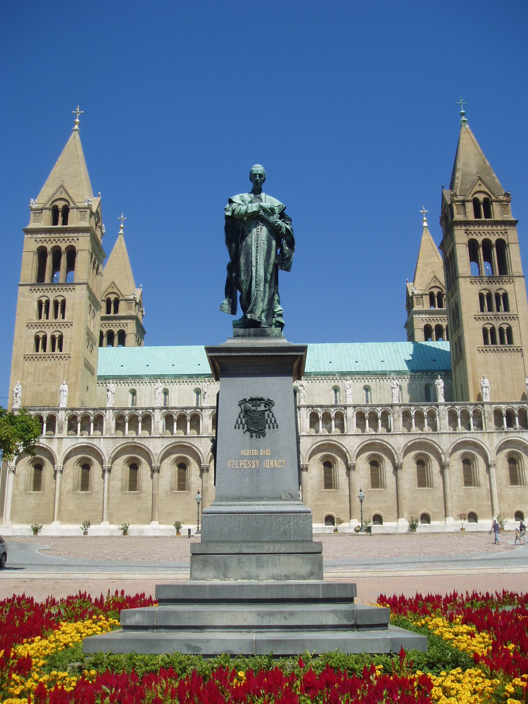 Pécs,Szent István tér.Székesegyház szoborral.224.jpg