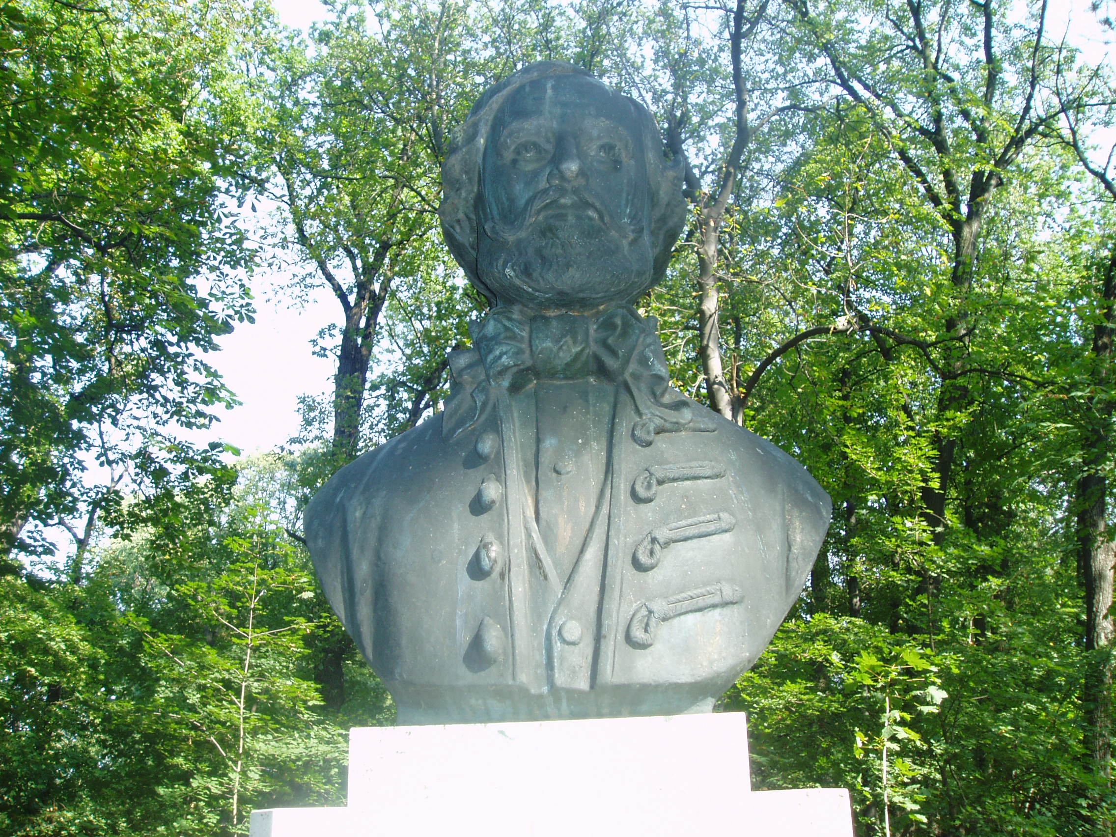 Nyilvános 1784 | 3709 | Sárospatak, Iskolakert: Egressy Béni szobra | A Református Kollégium (lásd: Sárospatak, Rákóczi u. 1.) bejáratával szemben találjuk az Iskolakertnek nevezett parkot. Az 1980-as években természetvédelmi területté nyilvánított Iskolakert sajátos nemzeti érték, mely egyedülálló az országban. Sétányai mentén Patakhoz kötődő jeles személyiségek szobrai állnak. A képen Egressy Béni bronz mellszobra látható. Kelemen Kristóf alkotását 1989-ben, a Szózat zeneszerzője születésének 175. évfordulója alkalmából avatták fel. Talapzatán hangjegyekkel és szöveggel a Szózat első két sora látható. Egressy Béni 1828–1831 között volt a kollégium diákja. Szobrának felállítását Béres Ferenc (1922–1996) énekművész kezdeményezte; ma már az ő szobra is az Iskolakertben áll, ugyanezen az oldalon. A fénykép 2007 augusztusában készült. Felh. irod.: Látnivalók Borsod-Abaúj-Zemplén megyében. Miskolc, Well-PRess, 1995 www.sarospatak.hu/nevezetessegek |