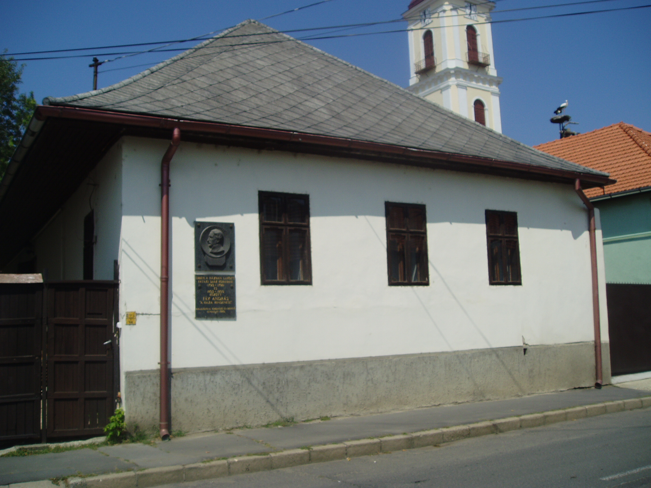 Nyilvános 1030 | 1687 | Sárospatak, Kossuth utca 22. | A homlokzatán 1990-ben elhelyezett emléktábla tanúsága szerint ebben a házban lakott pataki diák korában, 1793-1799 és 1803-1805 között Fáy András, "a haza mindenese", Alakját az Iskolakertben mellszobra idézi (lásd: Sárospatak, Iskolakert: Fáy András). A fénykép 2007 augusztusában készült. |