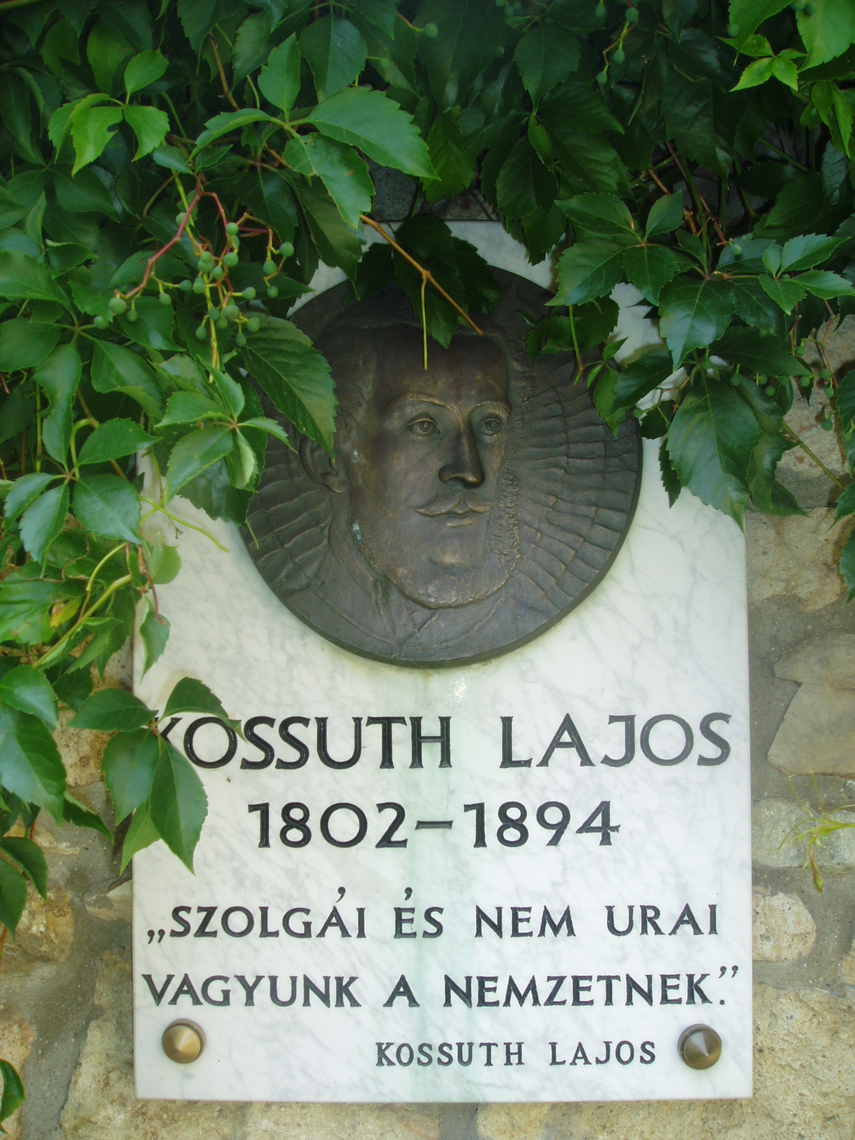 Nyilvános 1332 | 1836 | Szerencs, Huszárvár utca 11. Zempléni Panteon: Kossuth Lajos (1802-1894) emléktáblája | A neves államférfi zempléni kötődése meghatározó: életének első 30 esztendejét a történelmi Zemplén vármegyében töltötte. Monokon született, Olaszliszkán nevelkedett, tanulmányainak egy részét Sátoraljaújhelyben, illetve Sárospatakon végezte. A fénykép 2007 augusztusában készült. |