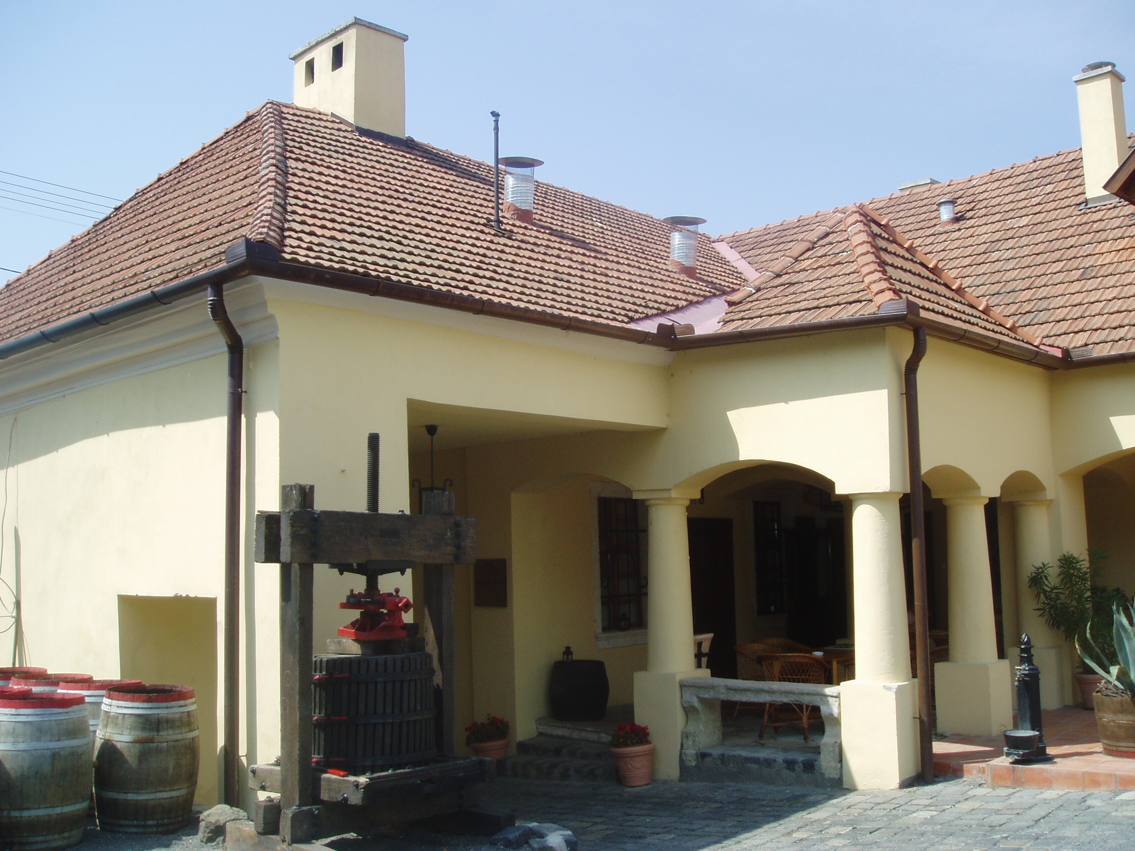 Nyilvános 1410 | 2028 | Tállya, Rákóczi utca 23. Szirmay-kúria | Tállya főutcája a felvidéki építészeti stílust őrzi, kőből épített boltíves kapui ma is szinte változatlan formájukban láthatók. Az egykori Szirmay-kúria épülete már négy évszázadra tekint vissza. 1771 körül a neves osztrák építész, Franz Anton Hillebrandt alakította át és bővítette ki a nemesi Szirmay família birtokközpontját. Szárnyas tölgyfa kapuján a hajdani címert oroszlánfejes kopogtatók szimbolizálják. A patinás épületben 2006 óta működik az Oroszlános Borvendéglő. A kúria jelenlegi újjáépített valóságában is történelmi korokat idéz: polgári kultúrájával, hegyaljai stílusával a község talán legpatinásabb képét adja. A bejárati nagykaput díszítő oroszlánfejes kopogtatók, a Hillebrandt stílusjegyeit viselő árkádsoros belső udvarrész, valamint a boltozatos tornác máig az épület ékességei. A fénykép 2007 augusztusában készült. Felh. irod.: www.apsus.eu/index.php?page=oroszlanos |