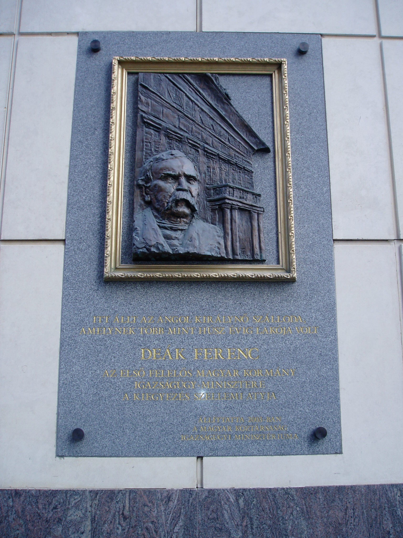 Nyilvános 1121 | 1719 | Budapest V. Deák Ferenc utca 1. | A mai Deák Ferenc utca 1. - Türr István utca 8. - Apáczai Csere János utca 9. számú épületek által határolt területen állt Kemnitzer János szerencsejátékból meggazdagodott tímármester 1792-ben épült kétemeletes monumentális lakóháza. Ennek földszintjén működött a Kemnitzer-, vagy másik nevén Márványos-kávéház, amelynek - a korabeli leírások szerint - nem akadt párja Európában. Az 1838-as nagy pesti árvíz azonban teljesen elöntötte és tönkretette az épületet, de erős alapfalainak felhasználásával újjáépítették, és új tulajdonosa szállodává alakíttatta. 1839-ben már meg is nyílt, s az akkoriban megkoronázott Viktóriáról nevezték el Angol Királynő szállodának. Az új szálloda is európai hírességgé vált vörösmárvány lépcsőivel, fehér, aranyozott oszlopaival és mahagónifával borított falaival. 1849-ben azonban ismét nagy csapás érte: Pest bombázásakor a környékbeli épületekkel együtt súlyosan megrongálódott. 1850-ben Hild József építette újjá, s ismét régi fényében működött. "Fejedelmek lakóhelyének" nevezték, mert lakott benne királynő, császár, sah, cár, trónörökös. A magyar történelembe azonban azzal írta be a nevét, hogy tizenöt éven át, majdnem haláláig itt élt Deák Ferenc, s itt tárgyalt a kiegyezés előkészítése idején a bécsi udvar megbízottaival. Az Angol Királynő az 1900-as évek elejétől kezdte elveszíteni népszerűségét, amikor elvette Dunára nyíló panorámáját és felülmúlta kényelmét az eléje épített luxushotelek sora. 1916-ban megszűnt, épületét, amelyben ezután a Pénzintézeti Központ működött, az 1940-es években lebontották. A fénykép 2005 májusában készült. Felh. irod.: Konrádyné Gálos Magda: Pest-budai szállók emlékeiből 2. = Budapest 1974. 9. Gundel Imre -Harmath Judit: A vendéglátás emlékei. Bp. Közgazdasági és Jogi Kiadó, 1979 |