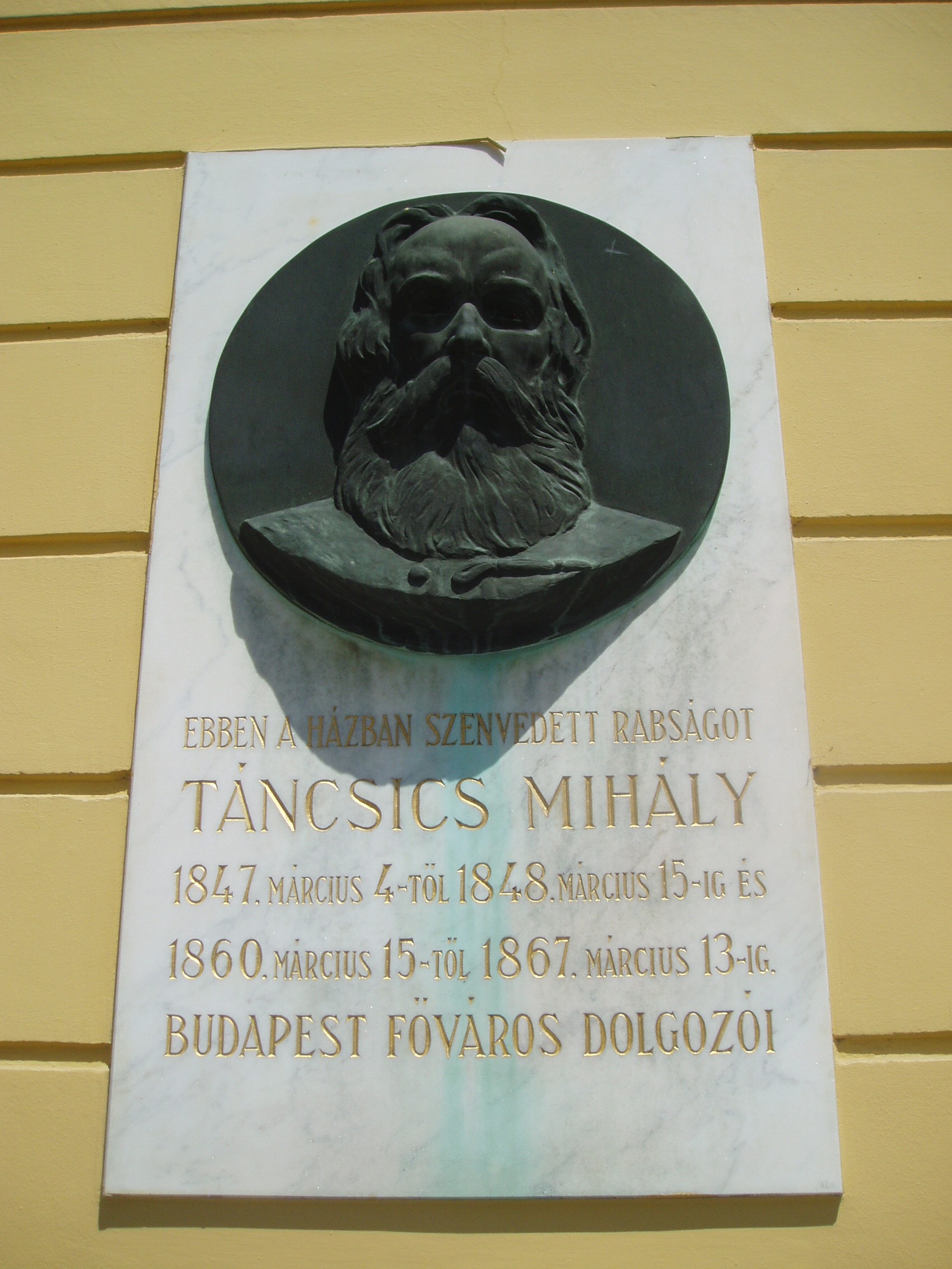 Nyilvános 939 | 1665 | Budapest I. Táncsics Mihály utca 9. | A volt József Kaszárnyát 1810 körül emelték késő barokk stílusban. Egyes feltételezések szerint körülbelül ezen a helyen volt a XIII-XIV. században a királyi pénzverde és a Nagy Kúria, amely 1301-ben Vencel király otthonául szolgált, 1354-ben pedig Nagy Lajos király városi kúriájaként említik. A kaszárnyaépület udvarán két méter vastag falú emeletes ház áll, valószínűleg 1720 körül építették. Eredetileg puskaporraktár volt, majd a XIX. század elejétől börtönnek használták. A főépületben, az első emeleten raboskodott Kossuth Lajos 1837-től 1840-ig, itt tanult meg angolul. Táncsics Mihály két alkalommal is lakója volt a börtönnek. Először 1848. márc. 4-től 1848. március 15-ig, amikoris Petőfi vezetésével Pest ifjúsága szabadította ki, majd 1860. március 15-től 1867. március 13-ig. Mindkét fogságáról részletesen írt Életpályám c. önéletrajzi művében). Portrédomborműves emléktábláikat Berán Lajos készítette. Itt volt bebörtönözve 1839-től Wesselényi Miklós, akit három évi várfogságra ítéltek. Itt hatalmasodott el szembetegsége, ezért a csehországi grafenbergi gyógyintézetbe internálták. Czuczor Gergelyt 1849. január 18-án Riadó c. verséért tartóztatták le és ide hozták vizsgálati fogságba. Írótársai közbenjárására a börtönben is dolgozhatott az Akadémia megbízásából készülő magyar nyelv szótárán. Buda visszavételekor, 1849. május 21-én a honvédek szabadították ki. Világos után újra bebörtönözték, ekkor Kufsteinben raboskodott. A fénykép 2007 májusában készült. Felh. irod.: Somorjai Ferenc: Budapest. Bp. Medicina, 1996 Erős Zoltán: Magyar irodalmi helynevek A-tól Z-ig. 2. bőv. átd. kiad. Bp. Kis-Lant Kiadó, 1995 |