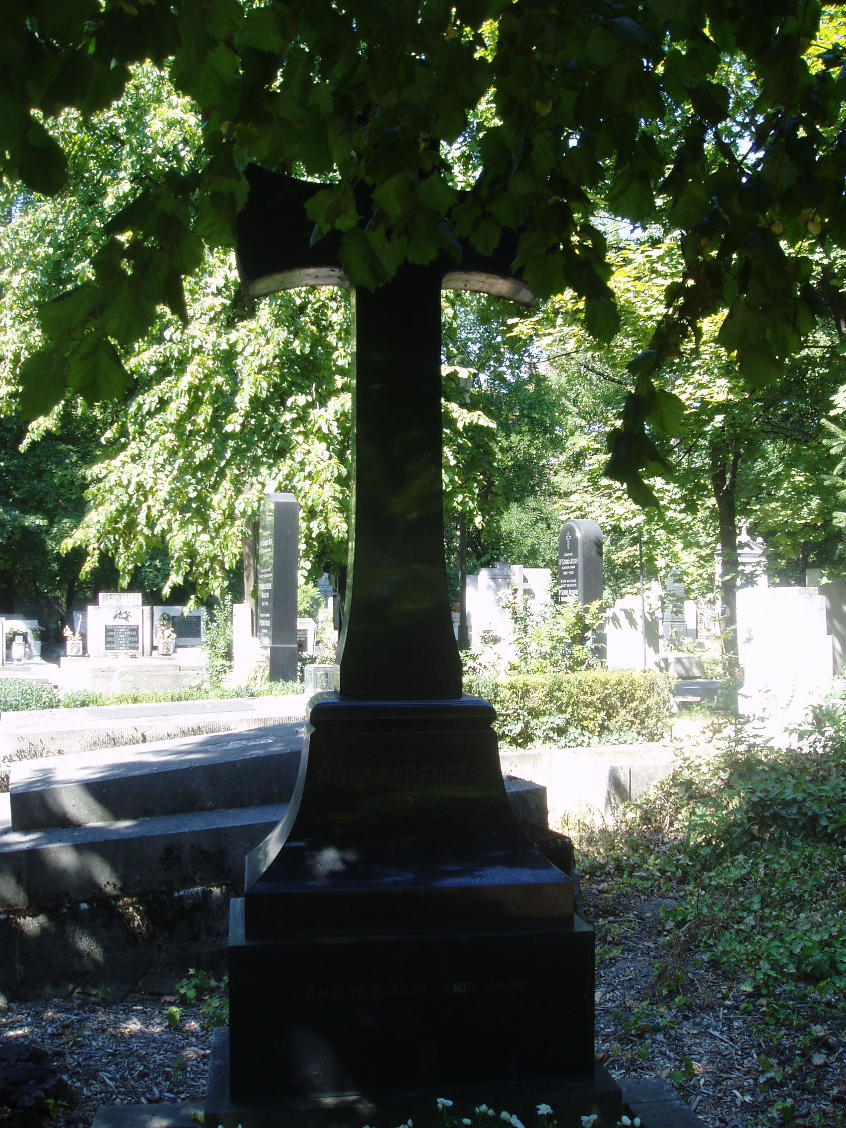 Nyilvános 1541 | 3347 | Szeged, Fonógyári út: Belvárosi temető: Móra Ferenc sírja | A temetőt az 1831. évi kolerajárvány után létesítették. Itt nyugszik az 1934. február 8-án elhunyt Móra Ferenc. Móra mint a Szegedi Napló (lásd: Szeged, Dugonics tér 12.) munkatársa került Szegedre. A lapnak 1913–1919 között főszerkesztője volt, majd haláláig állandó munkatársa maradt. 1904-től a Somogyi-Könyvtár és a Közművelődési Palota (lásd: Szeged, Roosevelt tér 1-3.) tisztviselője, könyvtárosa, majd régésze, s Tömörkény István halála után a múzeum igazgatója volt. Rákban hunyt el életének 55. évében. A fénykép 2007 júliusában készült. Felh. irod.: Péter László: Szeged. Bp. Panoráma, 1981 www.sk-szeged.hu/kiallitas/mora/moraferenc.html |