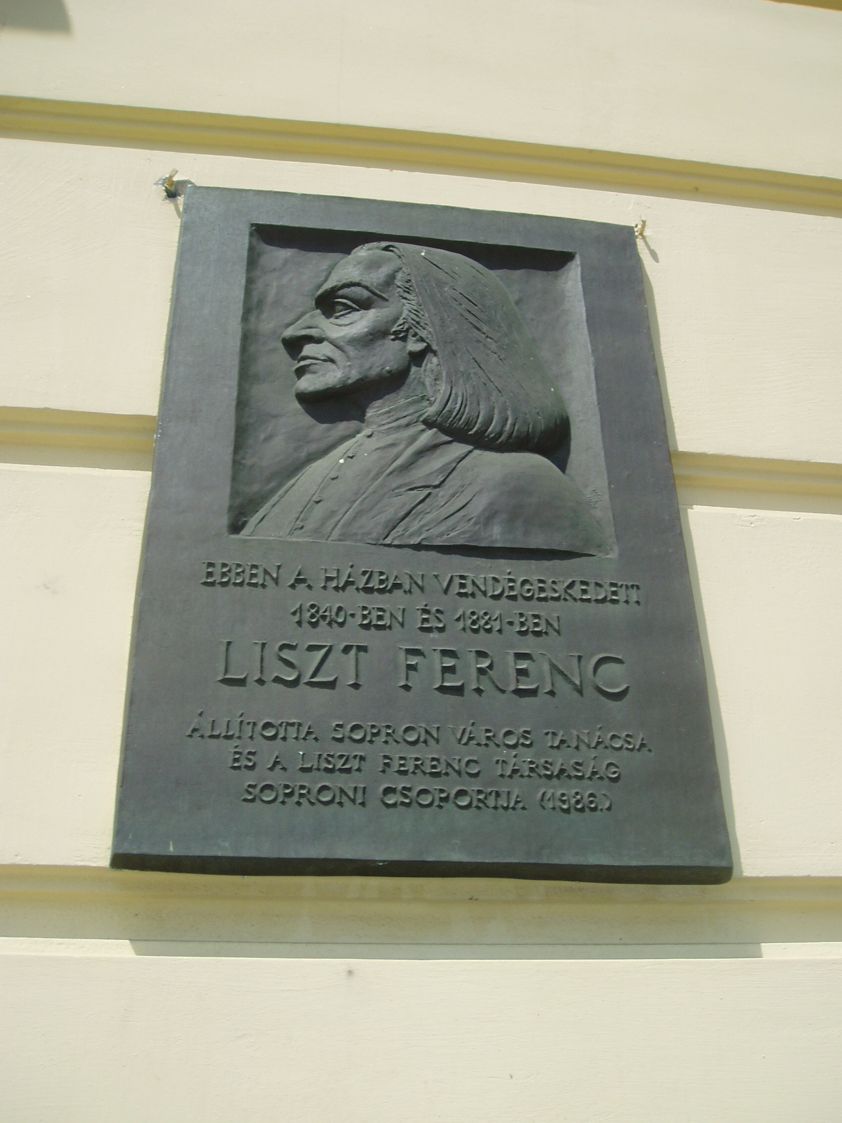 Nyilvános 1296 | 1623 | Fő tér 8. Storno-ház | Sopron városközpontjának egyik szép műemléke a középkori eredetű kétemeletes Storno–ház, amely mai formáját 1720 körül kapta. A történelmi múltú házban 1482-1483 telén hosszabb ideig tartózkodott Mátyás király, innét intézte bécsi hadjáratának ügyeit. Az eseményt a homlokzaton emléktábla örökíti meg. Az épület 1698-tól 1872-ig a Festetich család tulajdona volt. 1872-ben id. Storno Ferenc festőművész, restaurátor vette meg családi otthonnak, s itt helyezte el műgyűjteményét. A házban két ízben vendégeskedett Liszt Ferenc. Először 1840. február 18-i soproni hangversenye (lásd: Sopron, Petőfi tér 3.) után járt itt, az akkor itt lakó Auersperg Károly herceg meghívására. Jó négy évtized elmúltával, 1881. április elején ismét töltött itt néhány órát, amikor hangverseny–partnerével, gróf Zichy Géza zongoraművésszel id. Storno Ferencet látogatta meg már akkor is múzeumnak beillő otthonában. Liszt Ferenc emlékét portrédomborműves tábla örökíti meg az épület homlokzatán. A bejárati kapu előtt a járdába ágyazva kis tábla jelzi, hogy az épület a soproni Liszt Ferenc sétaút első állomása. A közelmúltban ugyanilyen módon elhelyezett bronztáblákkal jelölték meg azokat a legfontosabb épületeket, ahol élete során Liszt megfordult, illetve ahol ma emlékét ápolják (a sétaút további állomásai: Templom utca 6., Petőfi tér 3., Széchenyi tér 15., Szent György utca 12.). A Storno–ház ma múzeum. Első emeletén a Soproni Múzeum várostörténeti kiállítása kapott helyet. A második emeleten a ház egykori lakói, id. és ifj. Storno Ferenc által gazdagon dekorált és berendezett helyiségek tekinthetők meg. A kép 2008 júniusában készült. Felh.irod.: Czellár Katalin: Sopron. 3. jav. kiad. Bp. Panoráma, 2000 Askercz Éva: Storno–gyűjtemény. Bp. TKM 1987 /Tájak–Korok–Múzeumok Kiskönyvtára 276./ |