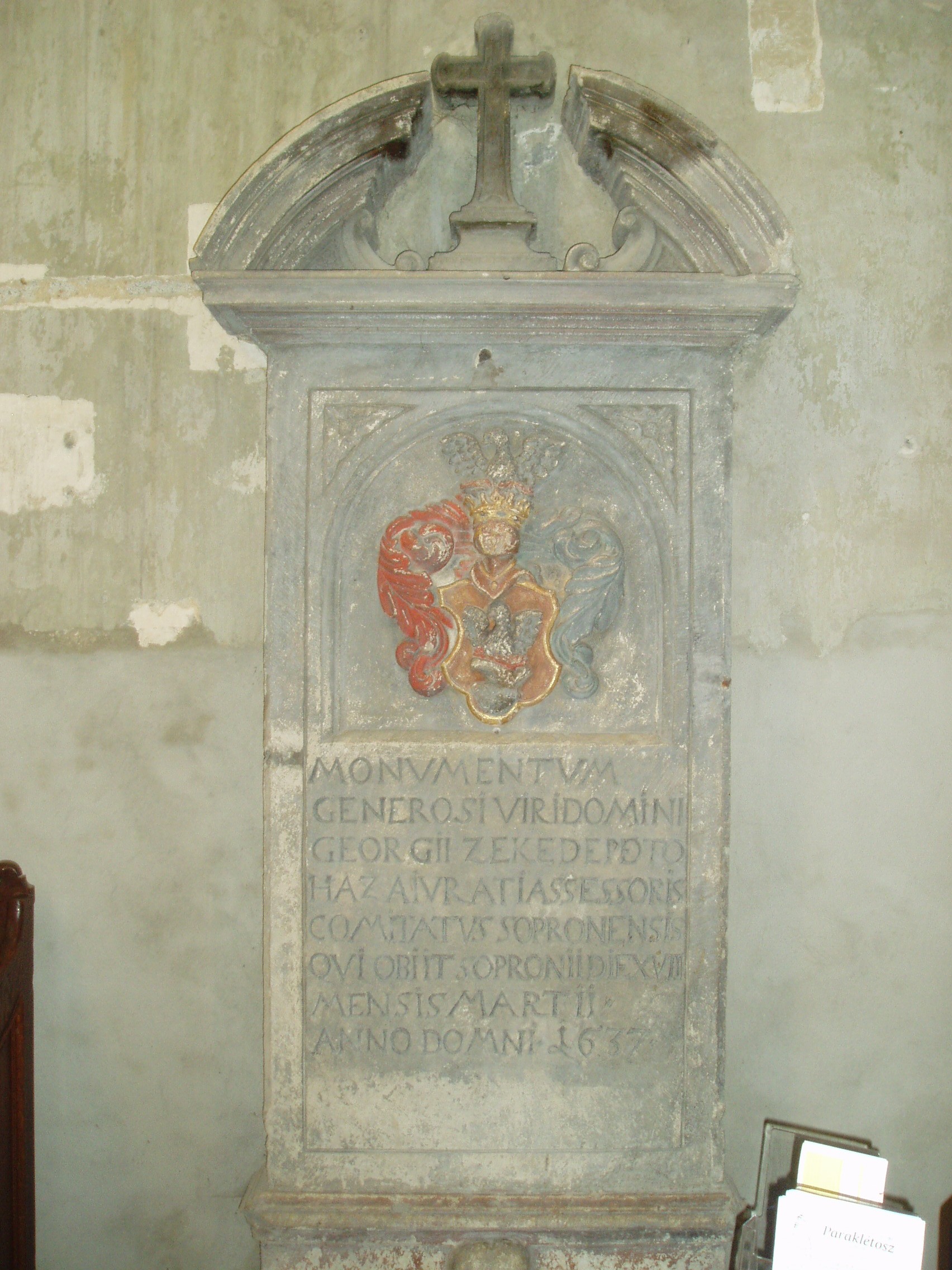 Nyilvános 825 | 1198 | Sopron, Fő tér: Kecske-templom | A soproni Fő tér ékességét, a gótikus Kecske–templomot és a hozzá tartozó ferences kolostort a XIII. század második felében kezdték építeni. Tornya a XIV. század első negyedében készült el; mai alakja id. Storno Ferenc 1888–1894 között végzett helyreállításának eredménye. Szokatlan nevét a kapuzat felett látható faragott állatfiguráról kapta, amelyről kiderítették a kutatók, hogy az építtető Gaisel család címerállata volt. A képen látható kecske-domborművet Storno Ferenc faragta az eredeti alapján, amelyet most a Káptalanteremben lehet megtekinteni. Maga a templom faragott kőből épült, háromhajós, északi oldalán toronnyal díszített kora gótikus épület, berendezése a későbbi századokból származó barokk, illetve rokokó stílusú. Déli hajójának közepén áll egy XV. századból származó, márványból készült szószék. Ebbe ágyazták bele azt a fából faragott szószéket, amelyről állítólag Kapisztrán János prédikált a templom előtt a török ellen. A templom többször volt színhelye országos jelentőségű ünnepségeknek, reprezentációs alkalmaknak: 1553 és 1681 között öt alkalommal falai között tartották az országgyűlési ünnepeket; 1625-ben királyt (III. Ferdinánd), 1622-ben és 1681-ben királynét koronáztak benne. 1787-ben feloszlatták a ferences rendet, s az épületegyüttest később a bencések kapták meg. A képen egy 1634-ből származó sírkő látható. A fénykép 2008 júniusában készült. Felh. irod.: Czellár Katalin: Sopron. 3. jav. kiad. Bp. Panoráma, 2000 Albert Tibor: Sopron–Vas vármegyei útikönyv. Magyar múlt — osztrák–magyar jelen. Kőszeg, Városkapu Kiadó, 2005 |