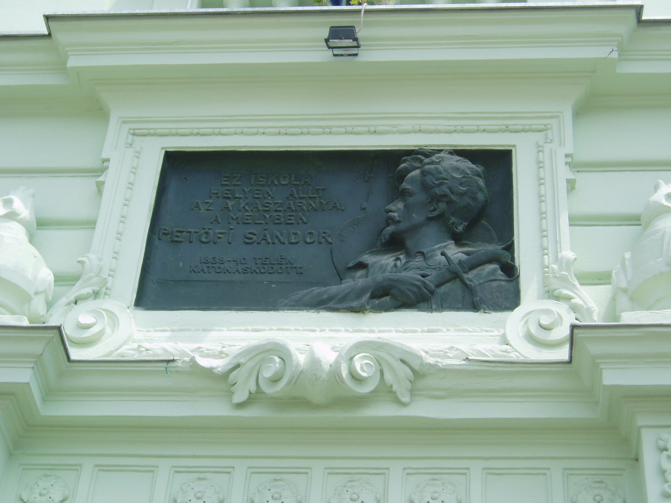 Nyilvános 1366 | 1786 | Sopron, Halász utca 25. | A Petőfi Sándor Általános Iskola falán emléktábla hirdeti, hogy valaha helyén az a kaszárnya állt, amelyben 1839/40 telén katonáskodott Petőfi Sándor. A fénykép 2008 júniusában készült. |