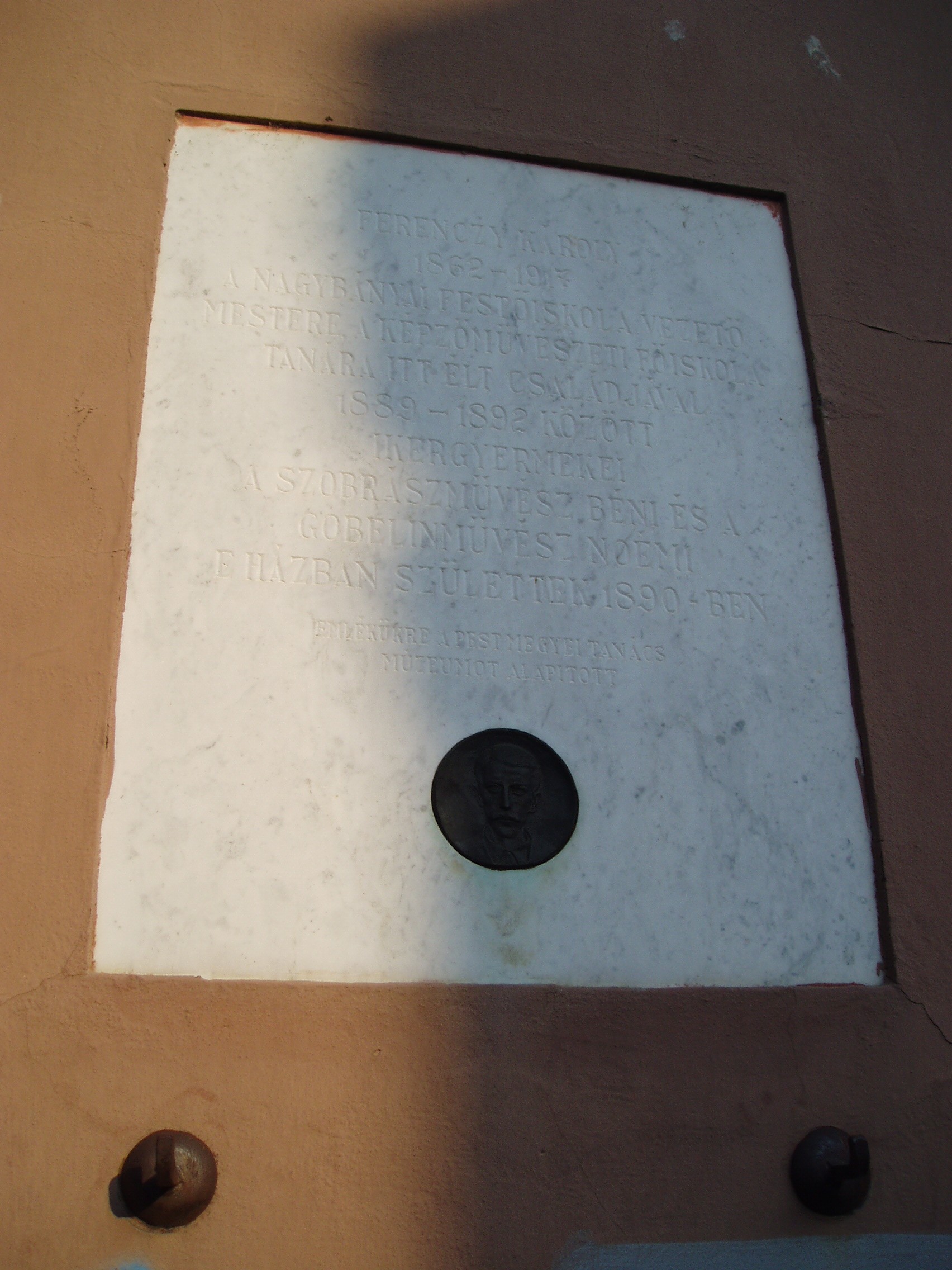 Nyilvános 1481 | 3209 | Rövid leírás | Teljes leírás (495 B) | Szentendre, Alkotmány utca 1. Ebben a házban élt 1889 és 1892 között Ferenczy Károly festőművész és felesége, Fialka Olga festőművész. 1890-ben itt születtek ikergyermekeik, akik mindketten halhatatlan alakjai a magyar képzőművészetnek: Ferenczy Béni szobrászművész és Ferenczy Noémi gobelinművész. A család legidősebb gyermeke, az 1885-ben született Ferenczy Valér is festőművész volt. A fénykép 2005 szeptemberében készült. |