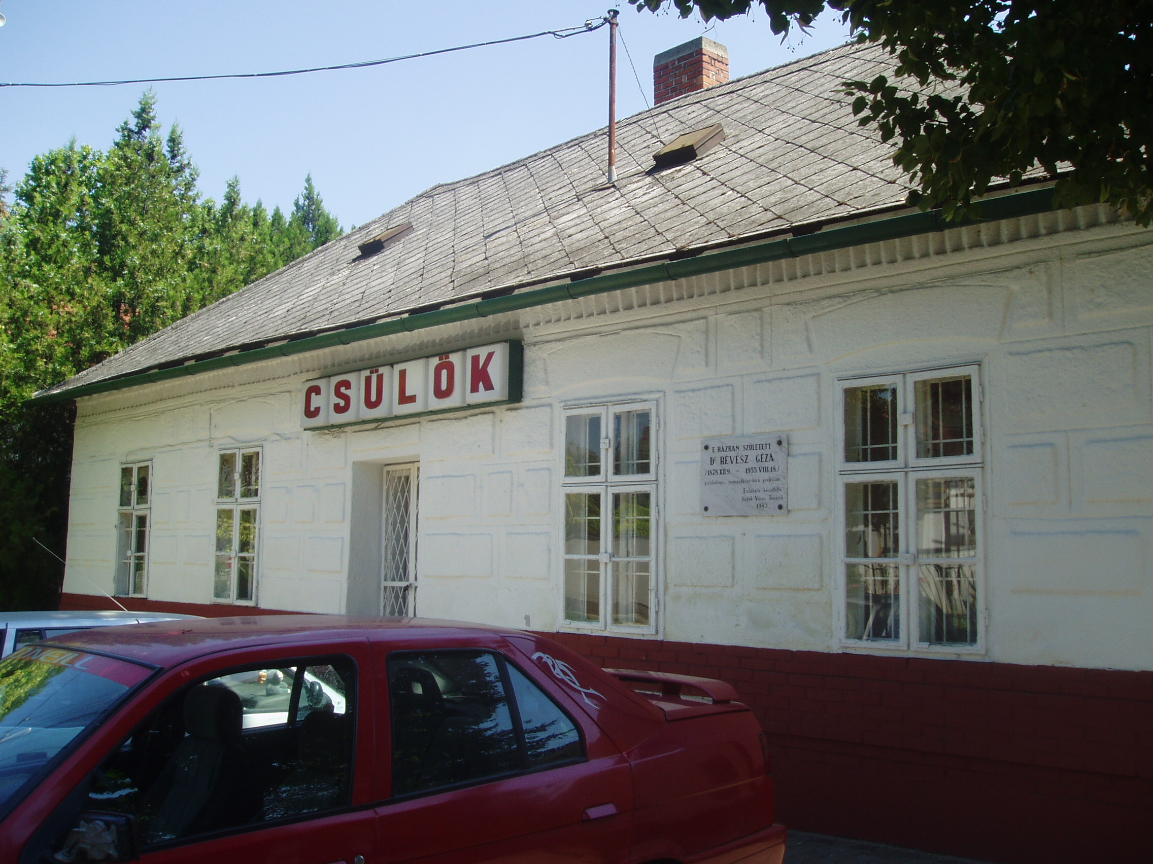 Nyilvános 1090 | 1946 | Siófok, Bajcsy-Zsilinszky utca 48. | 1878. december 9-én ebben a házban született Révész Géza pszichológus, nemzetközi hírű professzor. Elsősorban zenepszichológiával és hangfiziológiával foglalkozott. 1919-ben emigrált. 1921-től Amszterdamban működött, mint az ottani kísérleti lélektani intézet igazgatója. 1932-1950 között az amszterdami egyetemen a lélektan tanára volt. 1949-től a bajor tudományos akadémia tagja. A würzburgi egyetem díszdoktorává avatta. Amszterdamban hunyt el 1955. augusztus 18-án. A fénykép 2006 júliusában készült. Felh. irod.: Magyar életrajzi lexikon |