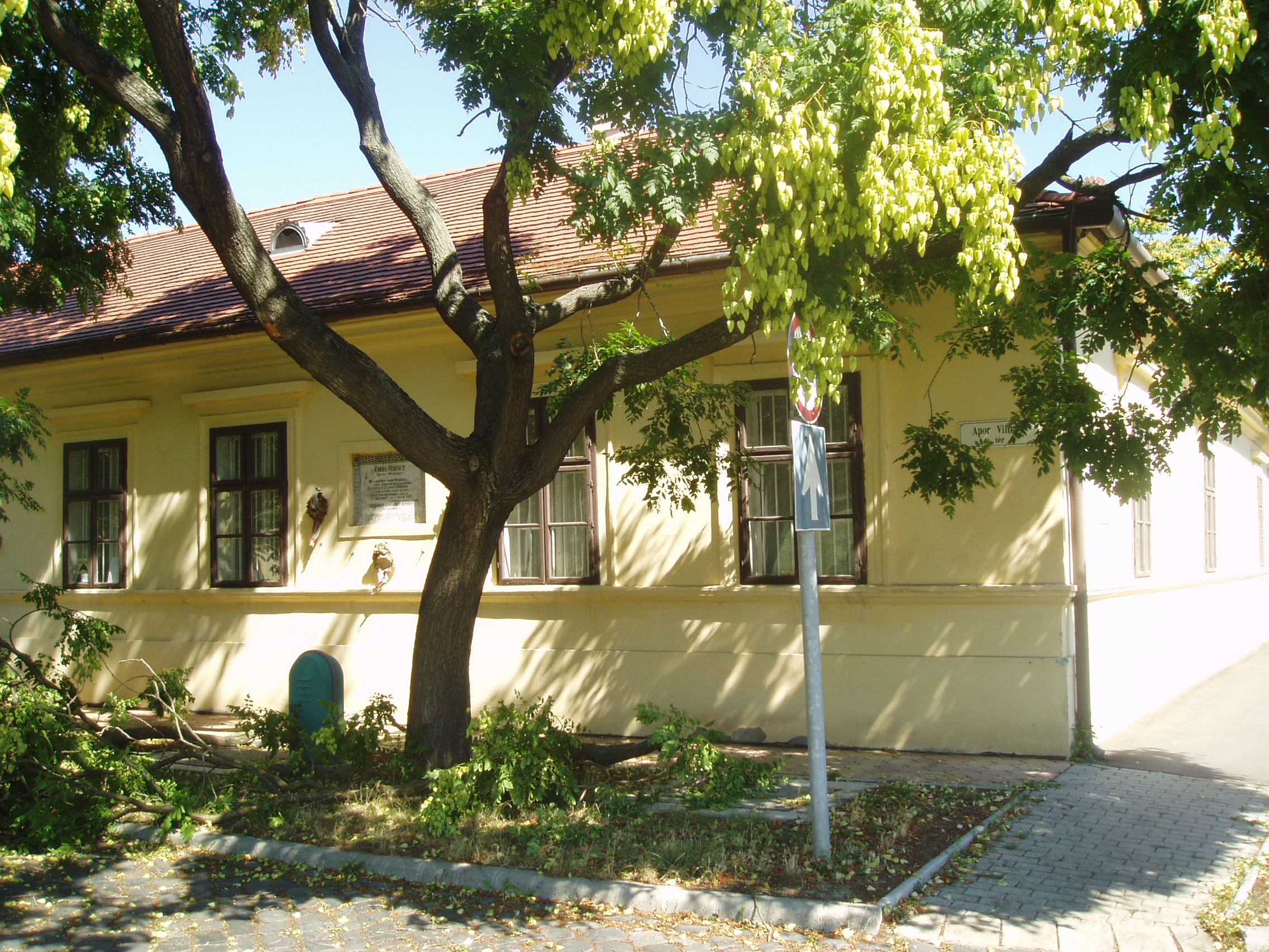 Nyilvános 1844 | 3460 | Gyula, Apor tér 7. Erkel Ferenc szülőháza | A földszintes, klasszicista jellegű németgyulai iskola és kántortanítói lakás 1795-ben épült. Az L alakú épület Apor térre néző szárnya volt az iskola, a Dürer utcára néző pedig a tanítói lakás, melynek ablakai közül kettő a térre néz. Ebben a házban született 1810. november 7-én Erkel Ferenc a németgyulai tanító fiaként, s testvéreivel együtt itt nevelkedett szeretetteljes családi légkörben. Első zenei tanítója remekül muzsikáló édesapja volt. Már néhány héttel Erkel halála után, 1893. július 5-én a házat emléktáblával jelölték meg, amelyet 1910-ben, születésének centenáriumán a most is látható díszesebbre cserélték. A korábbi tantermek helyén először 1960-ban rendeztek kiállítást, majd 1970-ben nyílt meg az Erkel Ferenc Emlékmúzeum. 1985-ben kibővítették, múzeumnak rendezték be az eredeti tanítói lakás helyiségeit is, köztük azt a sarokszobát, amelyben Erkel született. Az Emlékház gyűjteményében megtekinthetőek az Erkel család relikviái, s itteni életkörülményeikbe is bepillanthat a látogató. A fénykép 2007 júliusában készült. Felh. irod.: Czeglédi Imre: Gyula útikalauz. 2. bőv. kiad. Gyula, 1995 Czeglédi Imre: Erkel Ferenc Emlékház /Tájak, korok, múzeumok 238./ Németh Csaba: A gyulai Erkel Ferenc Múzeum Erkel–gyűjteménye. Gyula, 2007. /Gyulai katalógusok 12./ |