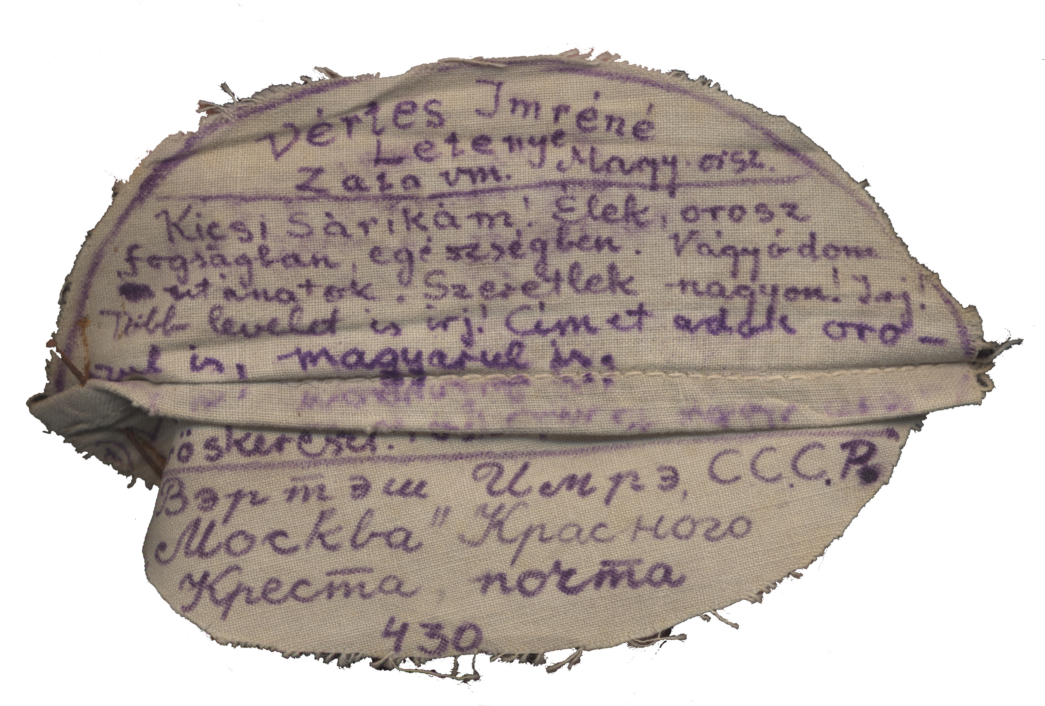 Nyilvános 1733 | 4482 | Rövid leírás | Teljes leírás (344 B) | Vértes Imréné Letenye Zala vm. Magy. orsz. Kicsi Sárikám! Élek, ororsz fogságban, egészségben. Vágyódom utánatok. Szeretlek nagyon! Írj! Több levelet is írj! Címet adok oroszul is, magyarul is. a) Vértes Imre U.R.S.S. "Moszkva" Vöröskereszt. Postafiók 430. b) ... |