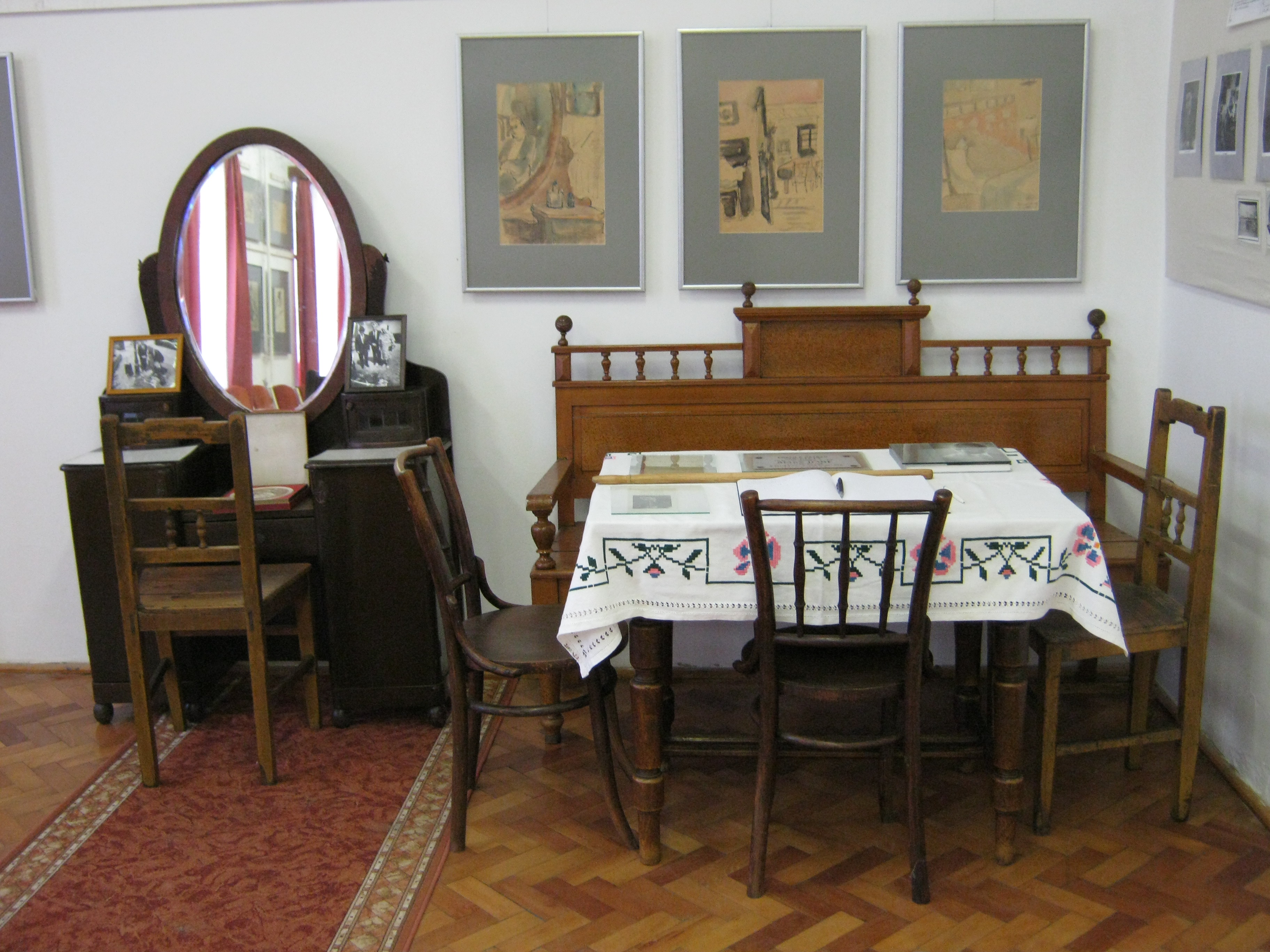 Nyilvános 1367 | 1733 | Nagykálló, Szabadság tér 5-8. | Az általános iskola épületében tekinthető meg az Ámos Imre Képtár. A tragikus sorsú festőművész Nagykállón született "a piac melletti Zsidó utcában" 1907. december 7-én Ungár Imre néven. Elemi és középiskolába is itt járt. 1944 nyarán a németországi Ohrdruf lágerébe hurcolták, halálának napja nem ismert. Harsányi Gézáné helytörténész így jellemzi: "Egyszerre volt tehetséges festő, mindhalálig verselgető, irodalmi értékű naplót vezető és a zene szépségeire megrezdülő, hegedűn kiválóan játszó művészlélek". Itt látható képeit felesége, Anna Margit ajándékozta Nagykállónak. Felh. irod.: Harsányi Gézáné: Kálló kincsei. Nagykálló, 2007 A fénykép 2010 augusztus elején készült. |