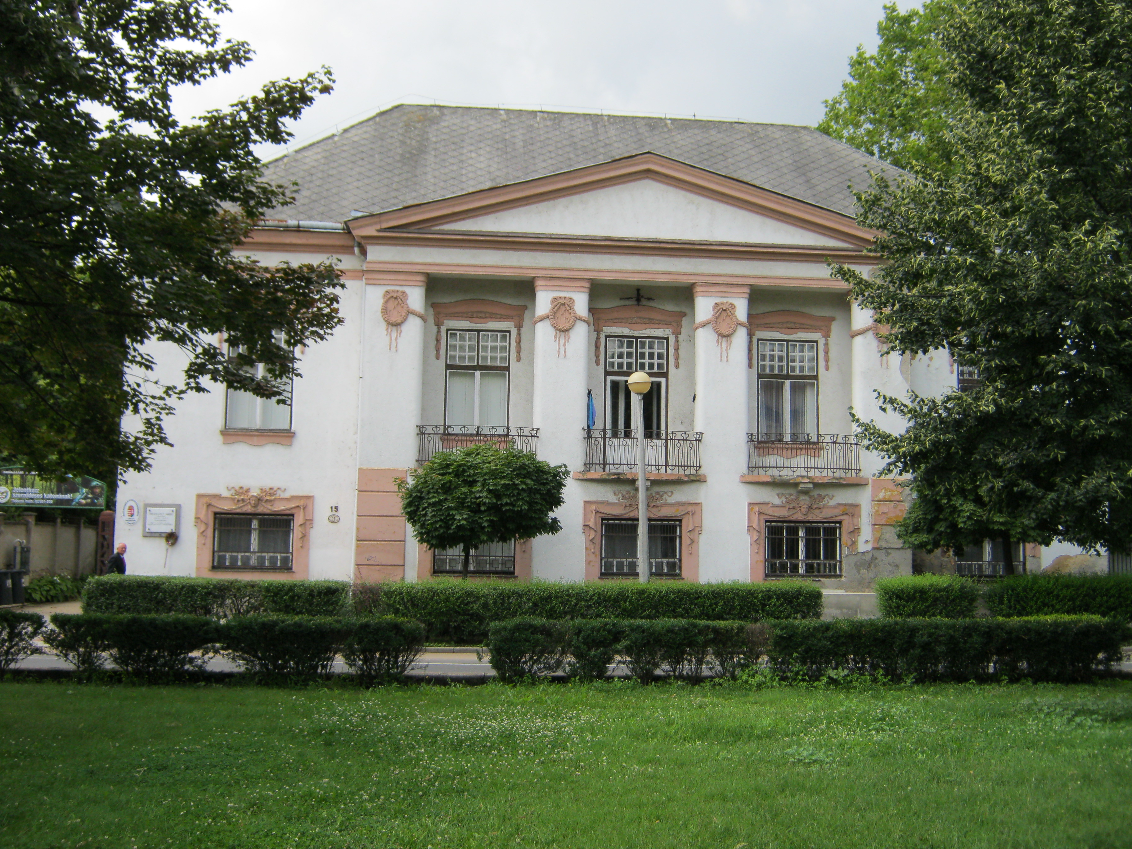 Nyilvános 1050 | 1799 | Nyíregyháza, Bessenyei tér 15. | A monumentális kúriát Kállay Rudolf (1853-1920), a nagykállói megyei kórház igazgatója építtette, tervezte Bobula János. A főorvos leánya, Kállay Ilona (Helén) nászajándékba kapta, amikor 1914-ben összeházasodott Kállay Miklós (1887-1967) szolgabíróval, Magyarország későbbi miniszterelnökével. Ebben a házban született meg első két gyermekük: 1916-ban Kállay Kristóf, 1918-ban ifj. Kállay Miklós. Kállay Miklós irodalommal is foglalkozott, 1911 körül publikált a Hónap című, akkoriban indult nyíregyházi irodalmi folyóiratban. Egy ideig a Bessenyei kör elnökeként is működött. 1919-ig állt a vármegye szolgálatában, majd 1922-ben, fiatalon Szabolcs megye főispánja lett. 1929-től minisztériumi államtitkár, majd földművelési miniszter, 1942-től Magyarország német megszállásáig - köztudottan angolbarát - miniszterelnök. Fia, Kristóf a Máltai Lovagrend római központjának egyik vezéregyénisége, akinek nagy szerepe volt a Máltaiak magyarországi újraéledésében. Idős korában hazatelepülve ő adományozta szeretett megyéjének az értékes könyvtárból, apja levelezéséből, érmékből, érdemrendekből és egyéb dokumentumokból álló Kállay-gyűjteményt (lásd: Nyíregyháza, Benczúr tér 21.). A Kállay-kúriában jelenleg a Kelet-Magyarországi Hadkiegészítő Parancsnokság működik. Felh. irod.: Margócsy József: Utcák, terek, emléktáblák. Nyíregyháza - Bp., 1984 „In asperis et prosperis” - amire a Kállay név kötelez - utolsó interjú Kállay Kristóffal . = Európai Utas 2007. 2. A fénykép 2010 augusztus elején készült. |
