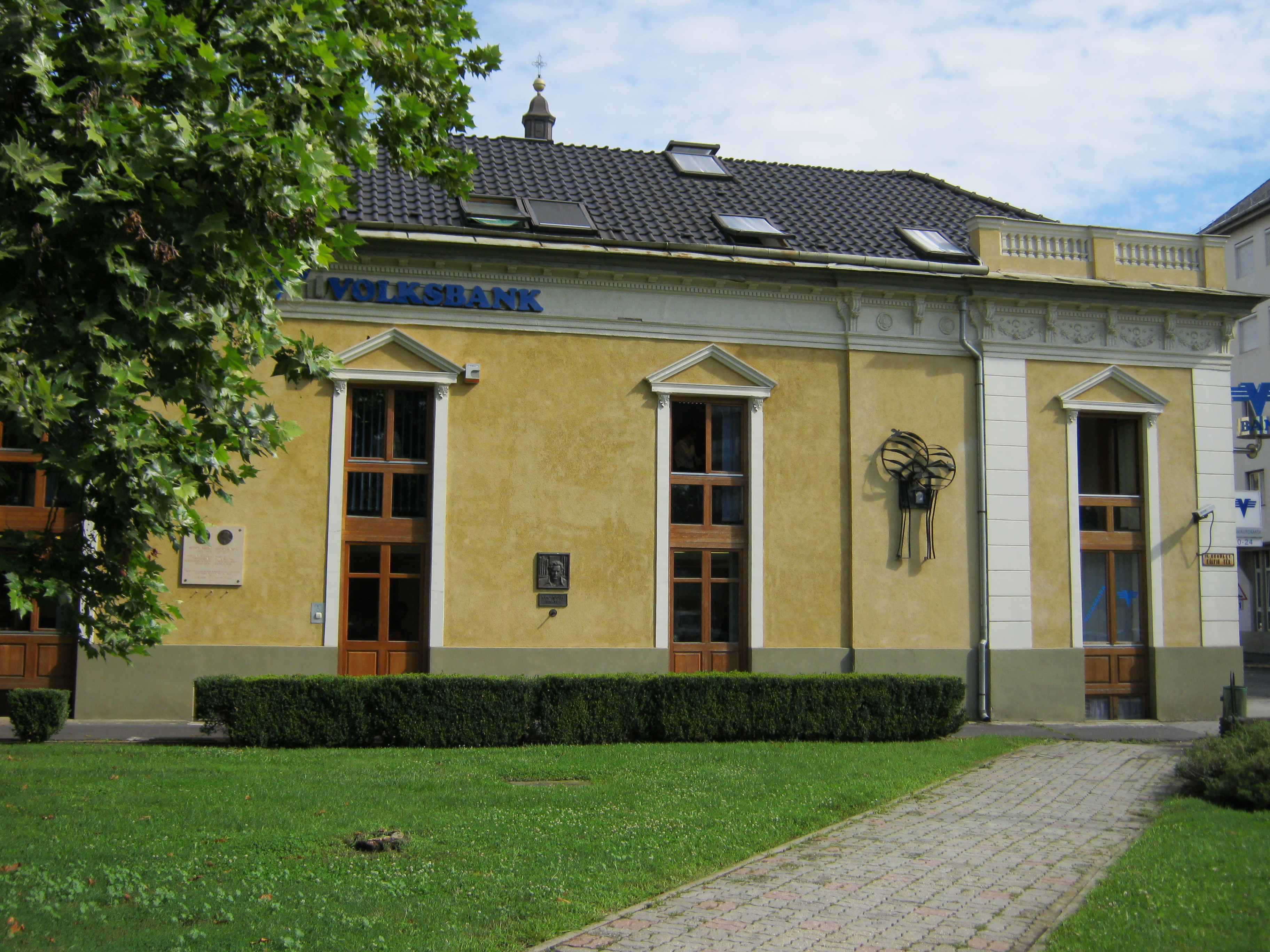 Nyilvános 820 | 1440 | Nyíregyháza, Kálvin tér - Bercsényi utca sarok | Az épületn két emléktábla látható. Az egyik Barzó Mihálynak (1857-1909) és fiának, Barzó Endrének (1898-1953) állít emléket. Ez lehetett a családi házuk - vagy ennek helyén állt, pontosabb információkat nem találtam és tábla feliratából sem derül ki teljesen. Barzó Mihály nyíregyházi építőmester volt. Az Operaház munkálatainál építésvezetői beosztásban is dolgozott. Barzó Endre festőművész élete nagy sikerét a Barcelonában rendezett világkiállításon érte el, aranyérmet kapott. Az emléktáblát 2003. augusztus 25.-én, Barzó Mihály halálának 50. évfordulóján helyezték el. A fénykép 2010 augusztus elején készült. Felh. irod.: www.szoborlap.hu Szatmári Gizella: Barzó Endre. = Szabolcs-Szatmár-Beregi Szemle 2006, február |