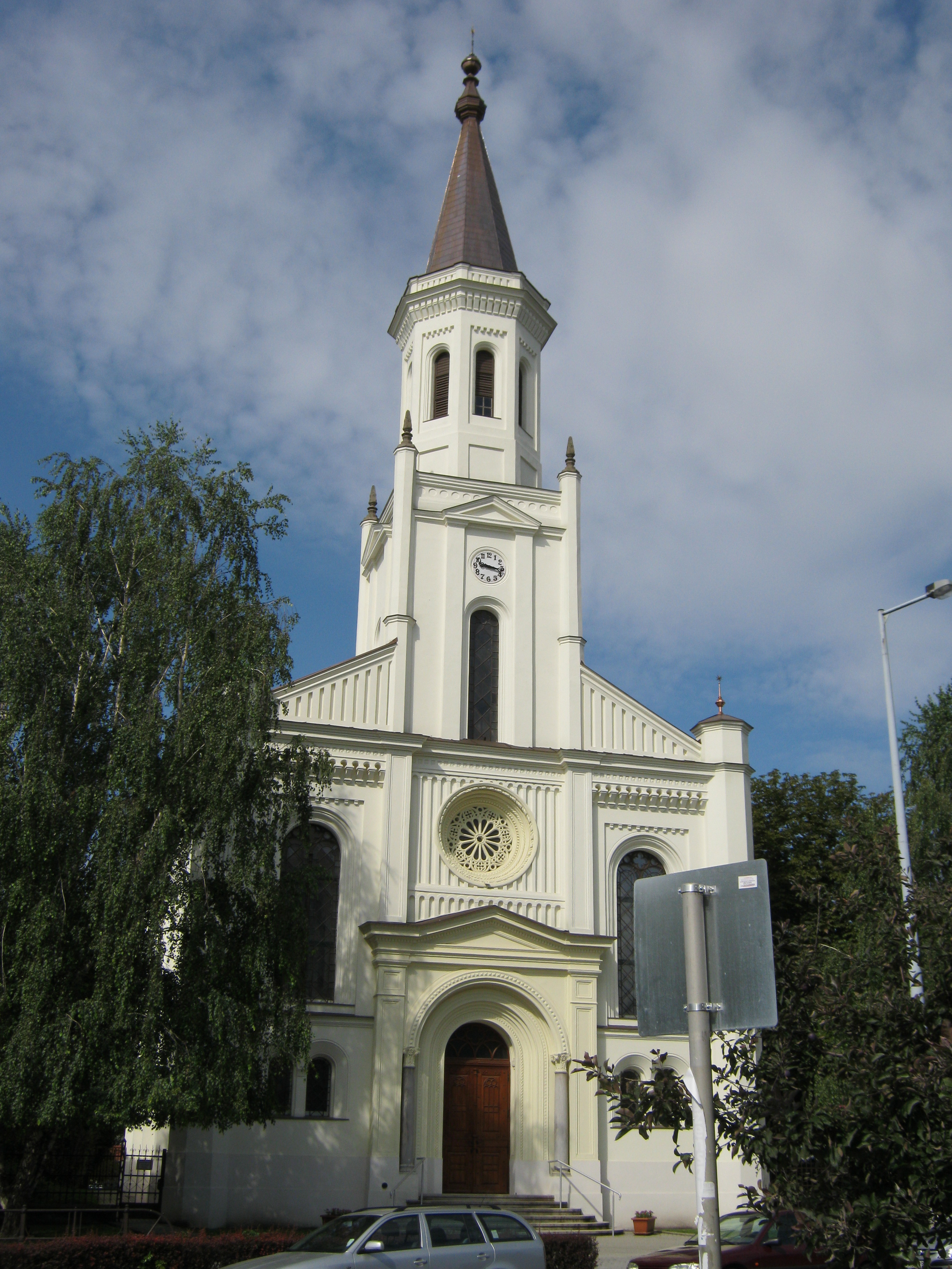 Nyilvános 1062 | 1975 | Nyíregyháza, Kálvin tér: Református templom | A Kálvin téren áll az 1873-1882 között, Melhouse János tervei szerint épült romantikus stílusú református templom. A kelet-nyugati fekvésű templom keleti homlokzati tornya 38 m magas, a belső térben összesen 800 ülőhely van. Orgonáját Kerékgyártó István építette. Gyakori és kedvelt koncert-helyszín is. Közelében emlékoszlop tudatja, hogy évszázadokkal korábban már templom állt ezen a területen, amelyet a XVII. századtól kezdtek használni a reformátusok, s amelyről Nyíregyháza a nevét is kapta. Felh. irod.: www.templom.hu A fénykép 2010 augusztus elején készült. |