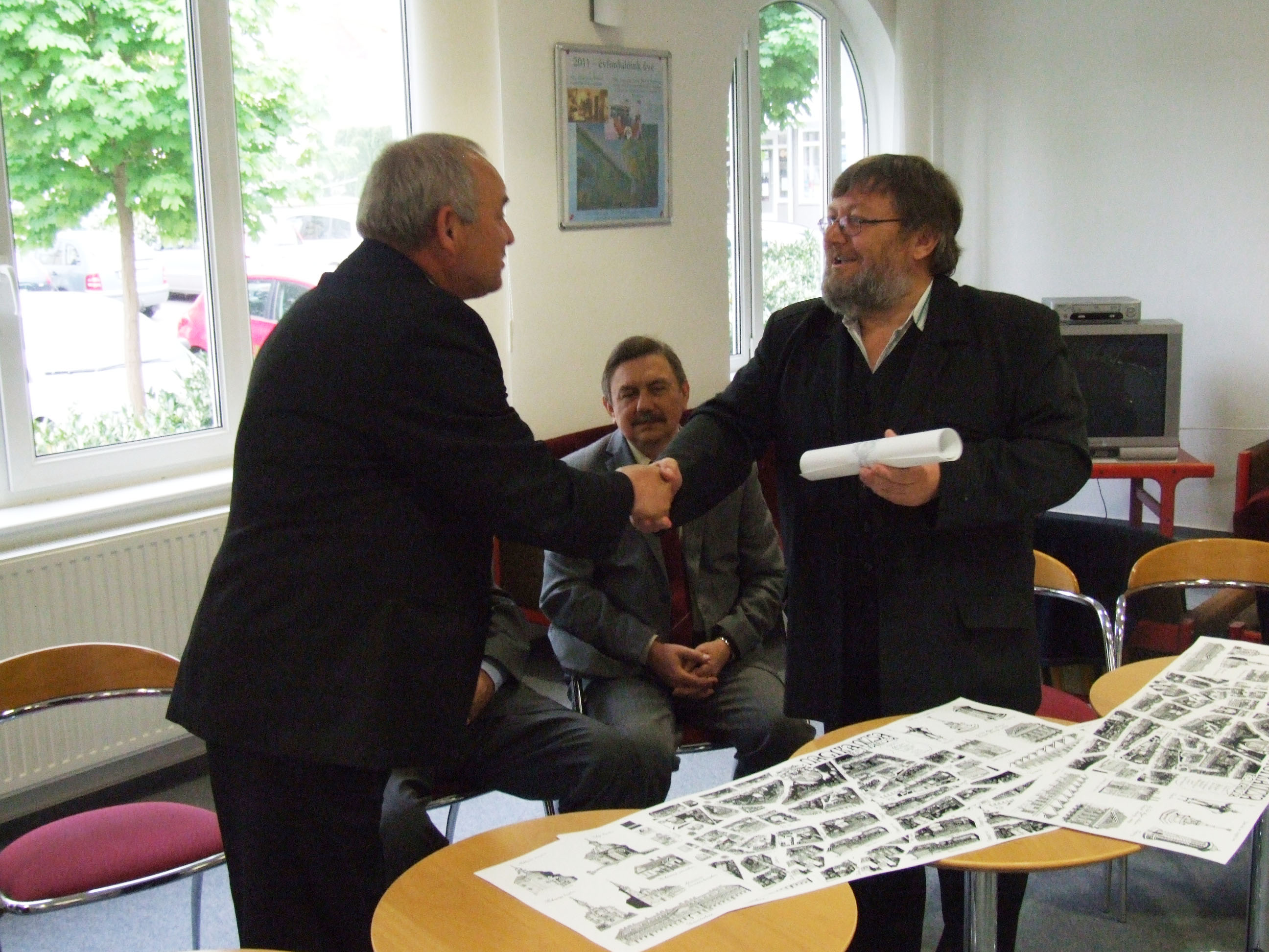 Nyilvános 1688 | 3035 | Nagykanizsa belvárosa – madártávlati kép | 2009 ősze óta folyt az munka, melynek eredményeként elkészült Nagykanizsa belvárosa madártávlati képe, Somogyi Győző alkotása. Bemutatására 2011. április 26-án, kedden 10,30-kor került sor a Halis István Városi Könyvtárban. Sokan támogatták a könyvtár és a Könyvtárpártoló Alapítvány törekvését – mondta el Czupi Gyula, a könyvtár igazgatója és az alapítvány képviselője. Az egész időszakban komoly segítséget jelentett a média képviselőinek támogatása, ezért az alkotást először az anyagi támogatóknak és a média képviselőinek mutatták be. A támogatók közül megjelent a Nagykanizsa Önkormányzatának képviseletében Dénes Sándor alpolgármester, a DKG-EAST képviseletében Szabó József, a nagykanizsai Városvédő Egyesület elnöke, Cserti Tibor, valamint a nagykanizsai Tourinform vezetője, Bali Vera. A magántámogatókat ezen a sajtótájékoztatón Tarnóczky Attila képviselte. A támogatók nem csak tanulmányozhatták az elkészült alkotást, hanem egy-egy példányt magukkal is vihettek ebből az alkalomból. Ugyancsak a kép egy-egy másolatával gazdagodva hagyták el a könyvtárat a média képviselői. A sajtótájékoztatón megjelenni nem tudó Kanizsa Plaza, a Sponzor Tours (Nagykanizsa), valamint a KKK Senior Kosárlabda Csapat később kapják meg a madártávlati képet, akárcsak azok, akik egyéni támogatásukkal segítették az alkotás létrejöttét. A könyvtár 60 éves születésnapjára készült művet nagyobb számban először a május 1-jei ünnepi program azon (300-nál több könyvet kölcsönző) meghívottjai kapják, akik emléklapot is vehetnek át ebből az alkalomból. Május 1-jétől a madártávlati kép meg is vásárolható a könyvtárban. Az érvényes könyvtári tagsággal rendelkezők kedvezményesen juthatnak hozzá. |