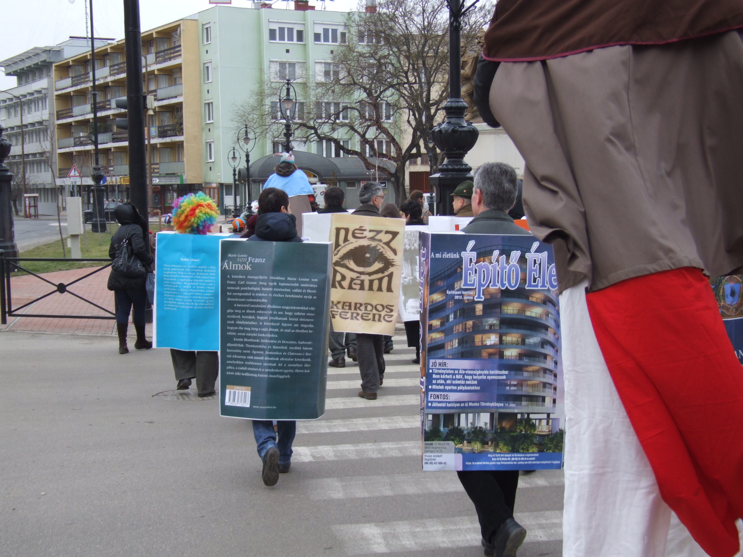 Nyilvános 992 | 1450 | 2013. február 9. A farsangi fánkfesztiválra készülve felhívásban kértük olvasóinkat, hogy öltsék magukra kedves könyvüket. Egy „könyvespolcnyi” jelentkező vette magára kedves olvasmányát, az ő vonulásukról készültek ezek a képek. A környezetükben néhol láthatók a Nagykanizsai Gólyalábasok, akik szintén a könyvtárhoz kötődnek. A „felvonuló kötetek” a könyvtár épületében még megtekinthetők. | |