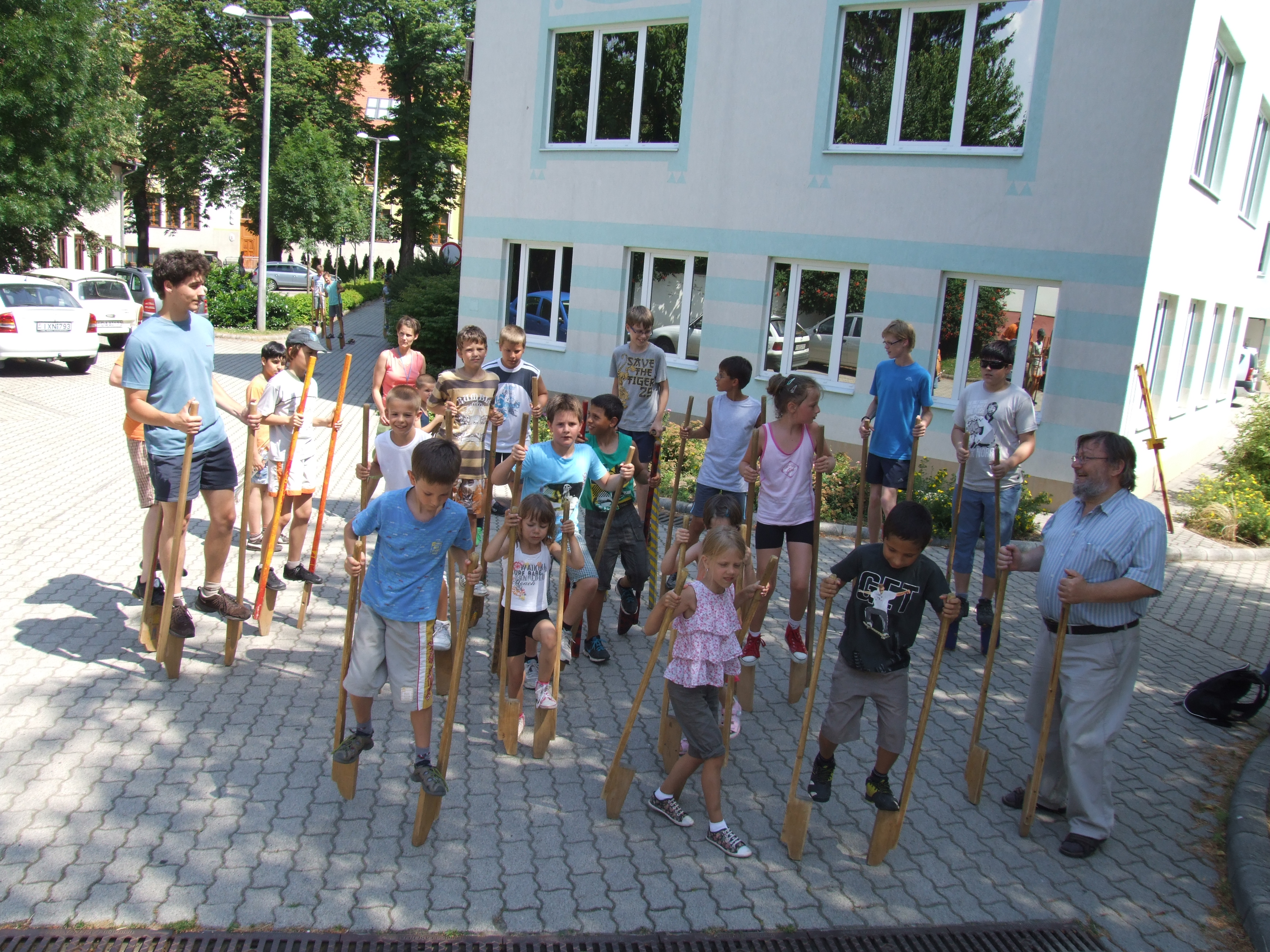 Olvasótábor 2013 résztvevők és piaristák gólyalábaznak