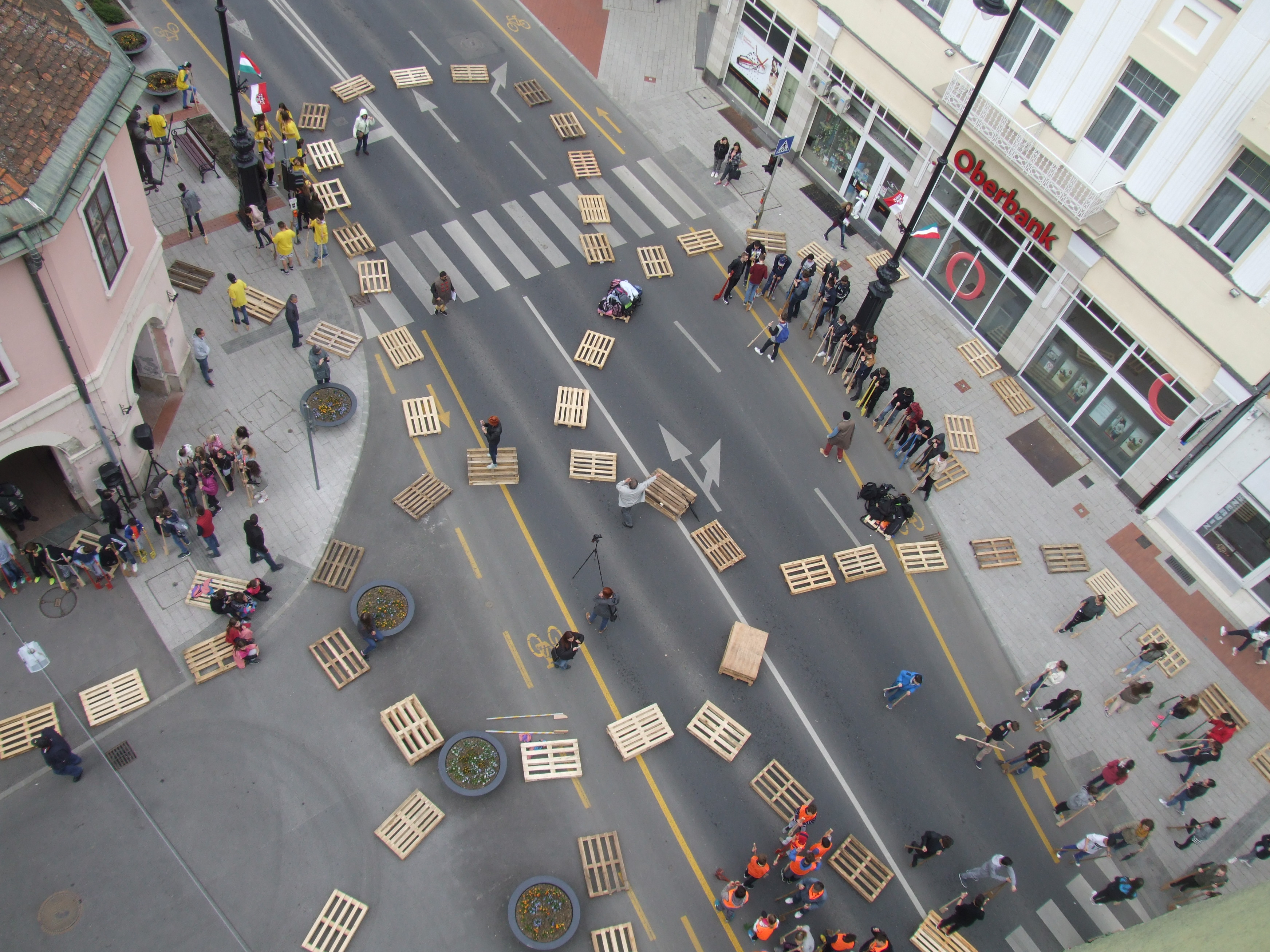 2017.04.27. Tömeges gólyalábra állás a Fő út - Ady u. kereszteződésében